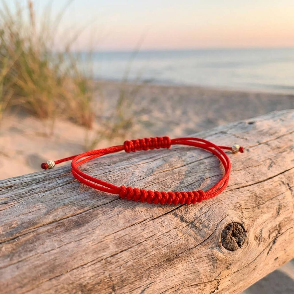 Гривна с червен конец и 14 карата златни топчета