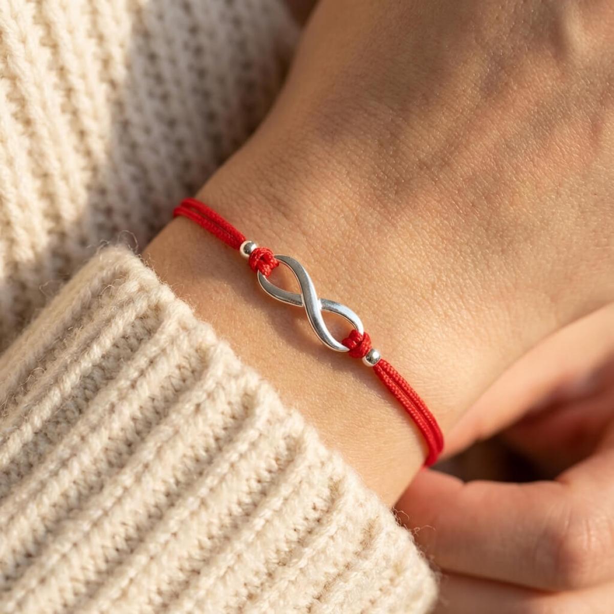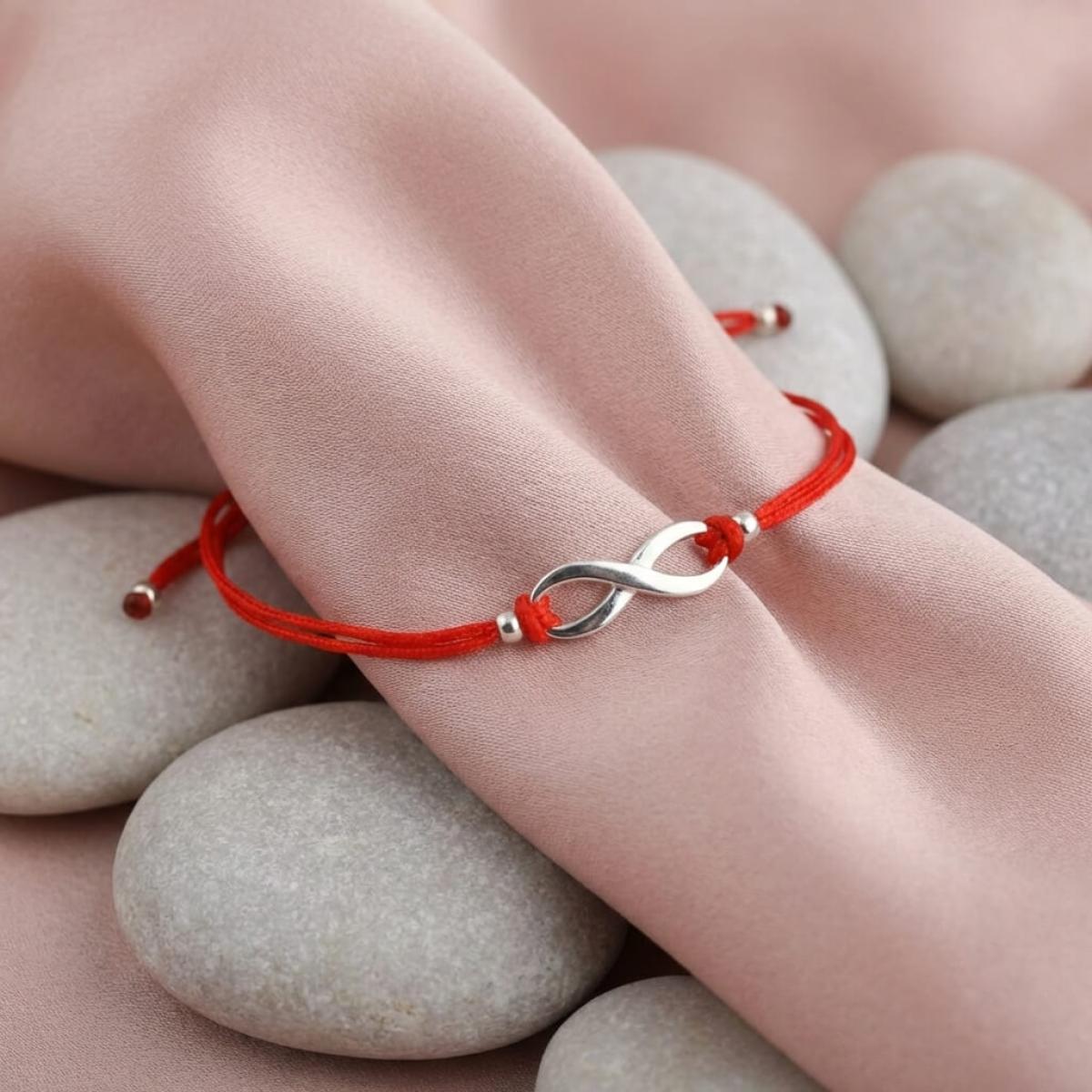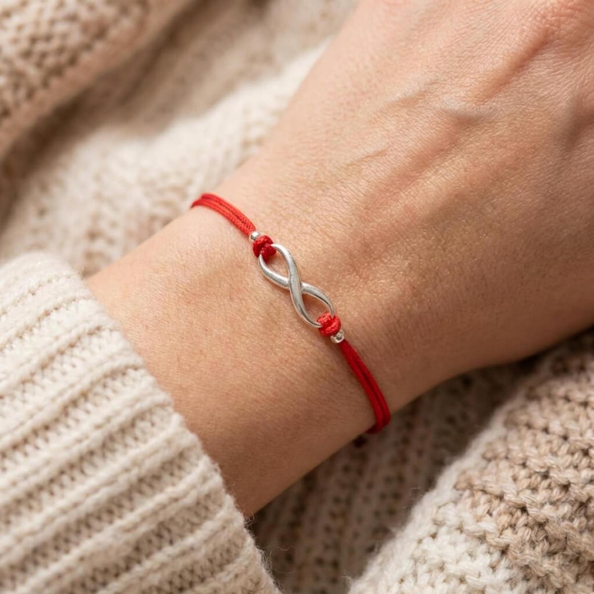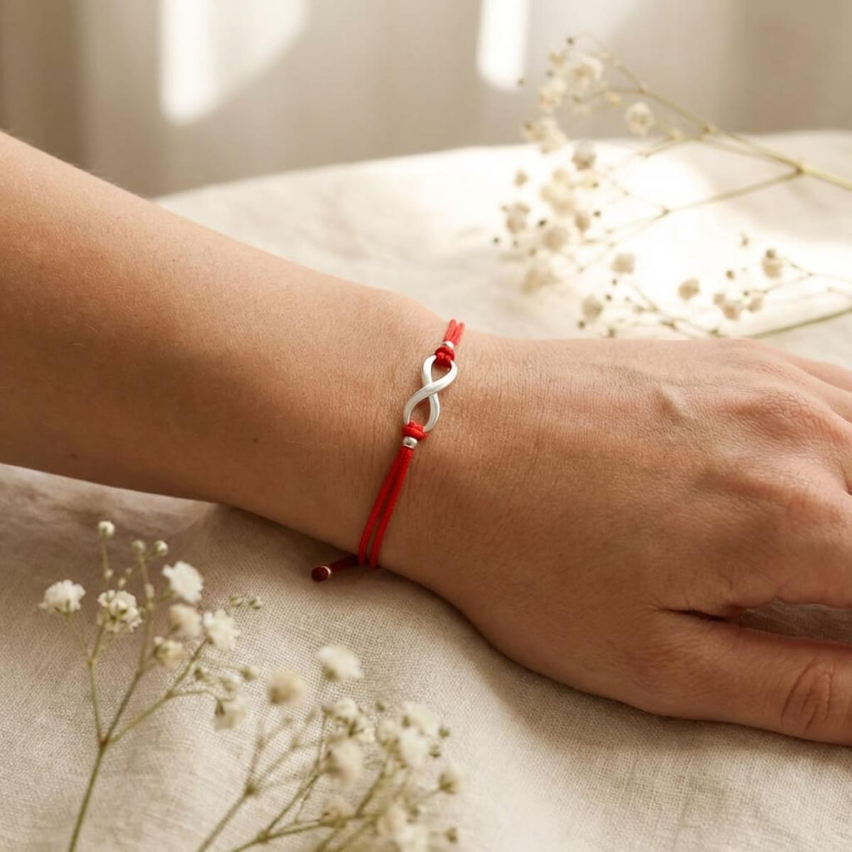 Гривна с червен конец и сребърен елемент безкрайност В93S