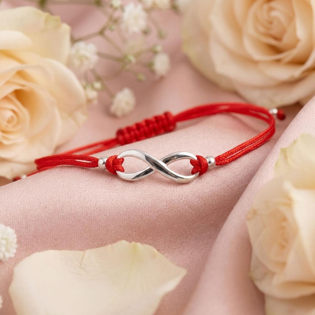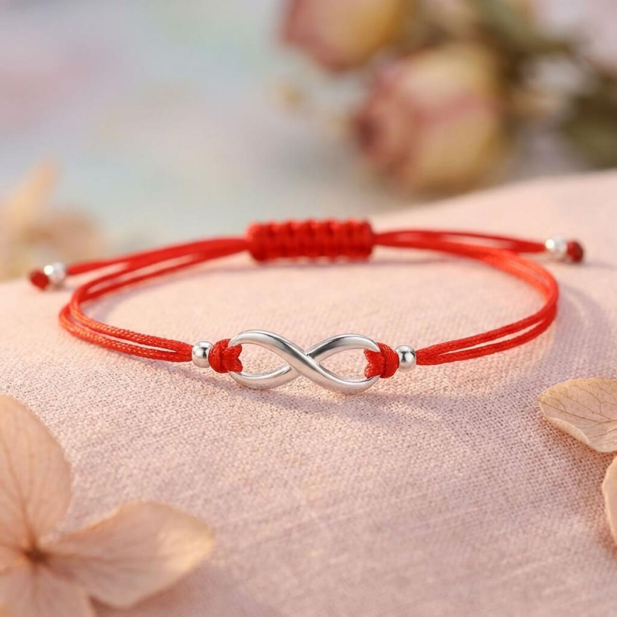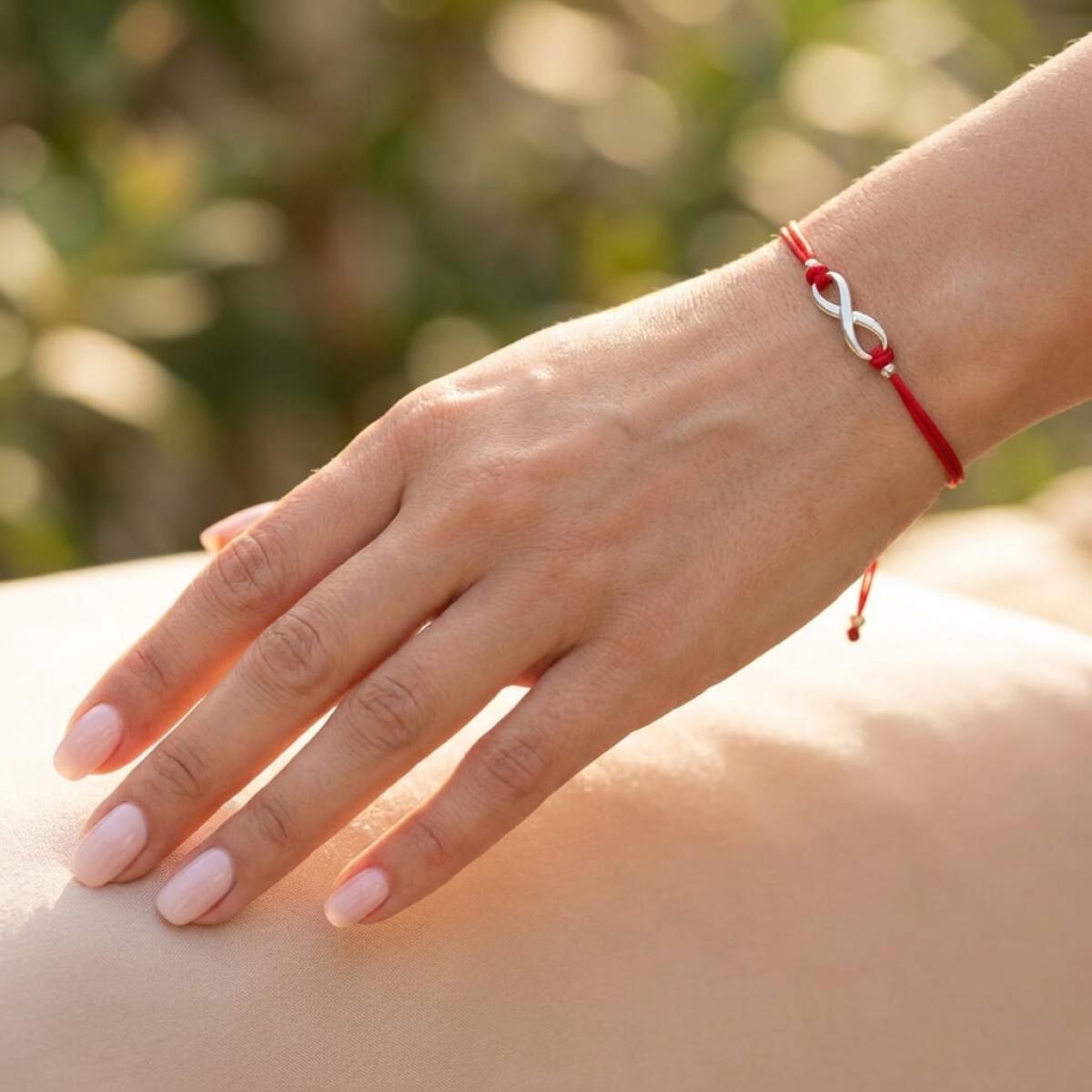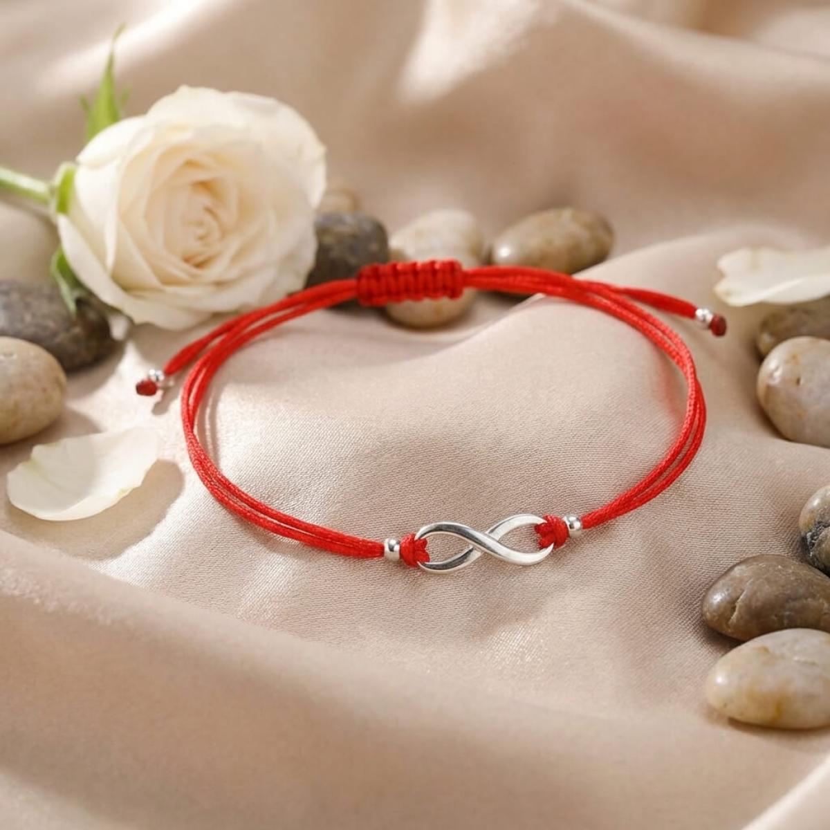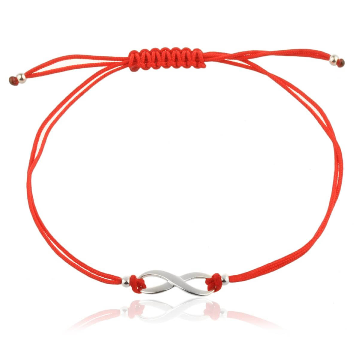 Гривна с червен конец и сребърен елемент безкрайност В93S