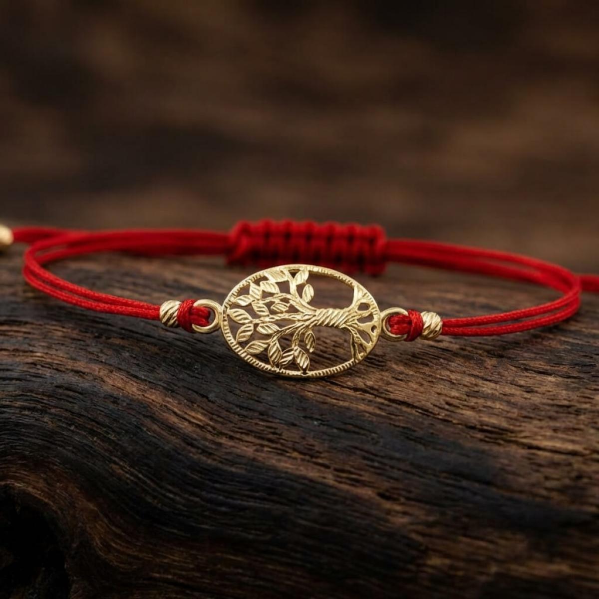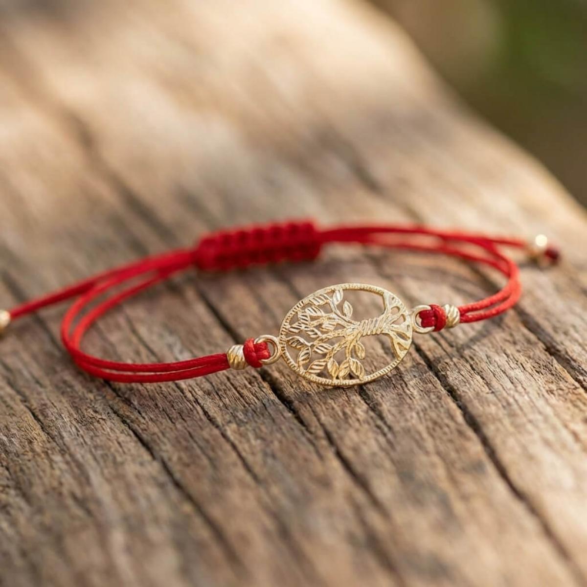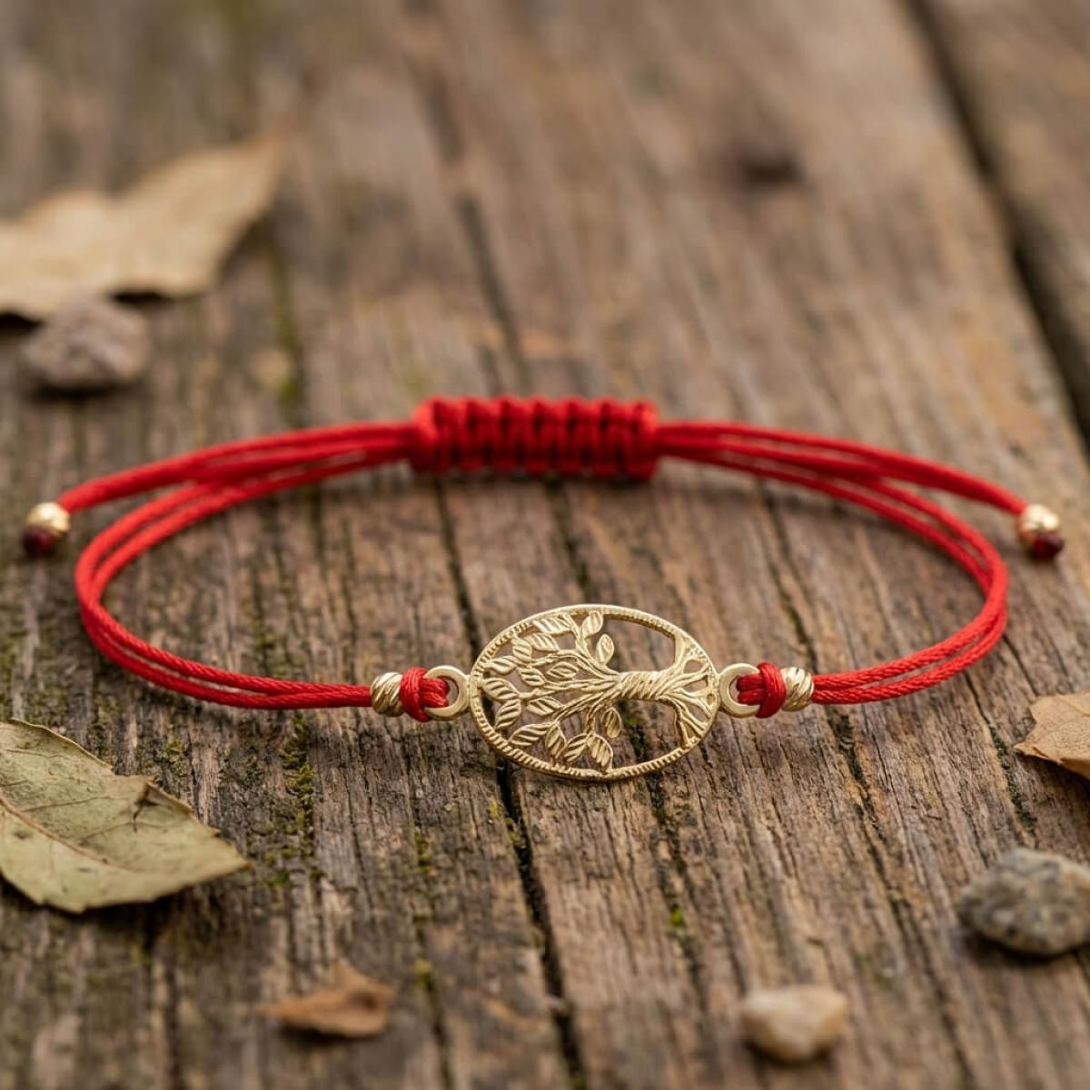 Гривна с червен конец и златен елемент Дървото на живота