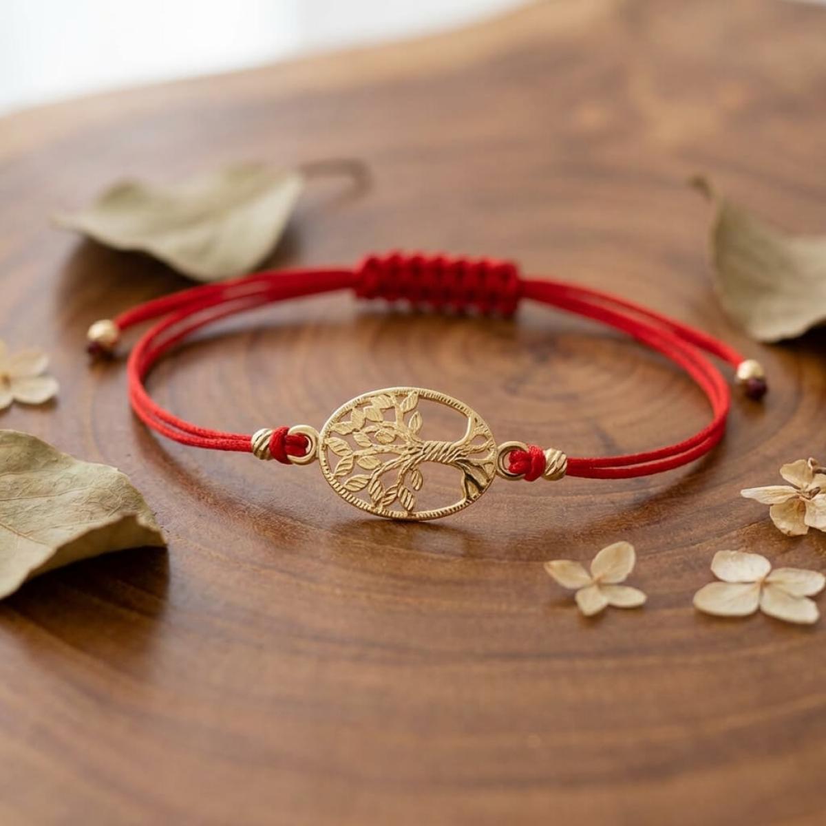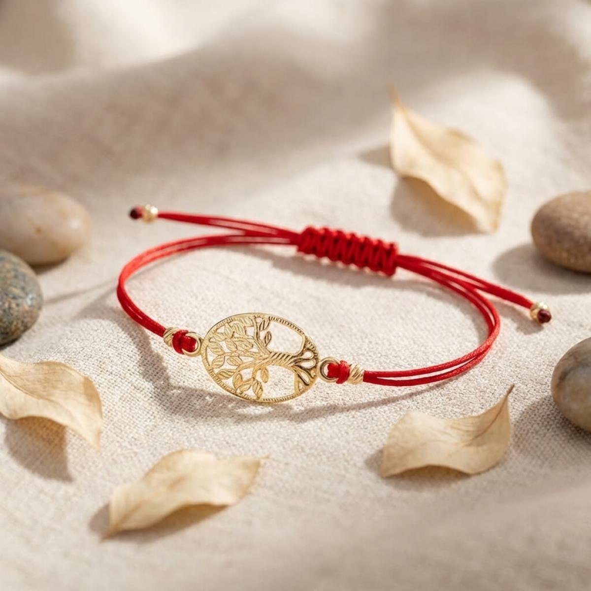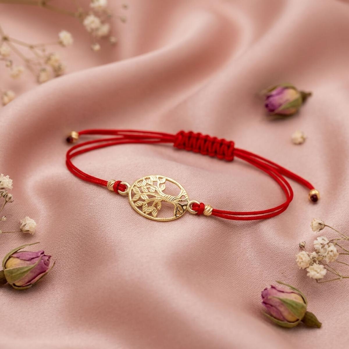 Гривна с червен конец и златен елемент Дървото на живота