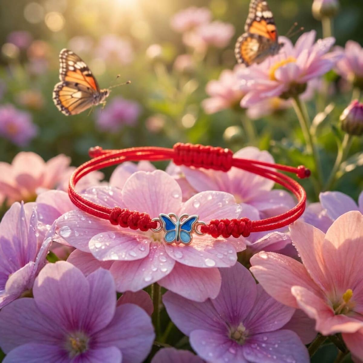 Мощен амулет, предпазващ от лоши очи и негативни влияния е нещо, от което всички имаме нужда. Бижутерия Паладиум ви предлага едно атрактивно средство за защита – гривна с червен конец и пеперуда. В това стилно изделие са въплътени две от най-силните защити, познати както у нас, така и в много други култури. Единственият детайл на украшението, изпълняващ ролята единствено на декорация, са стилните златни елементи.