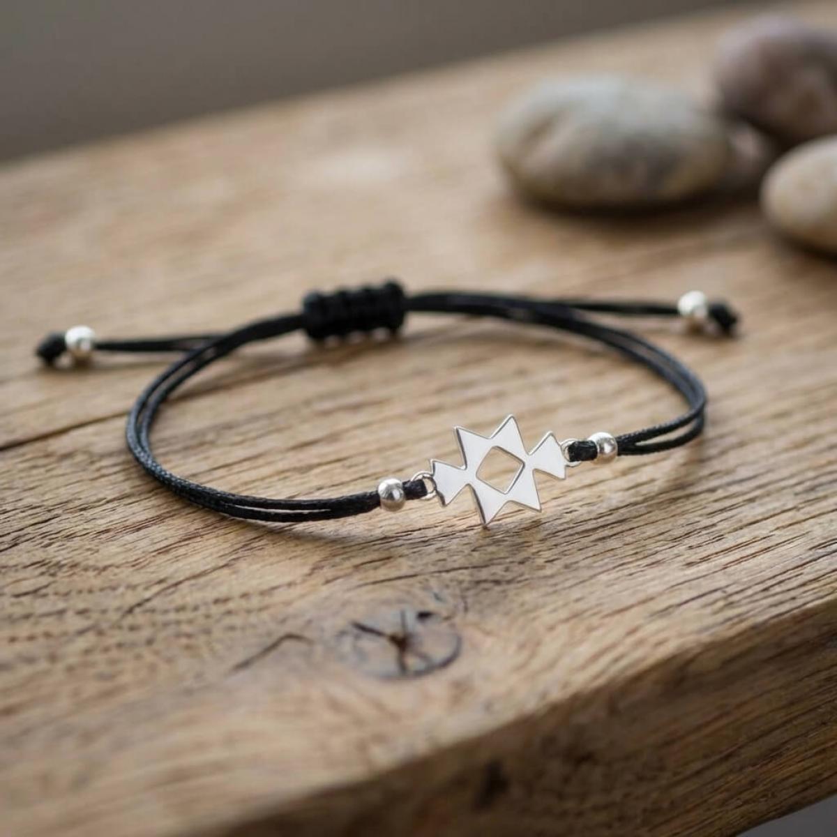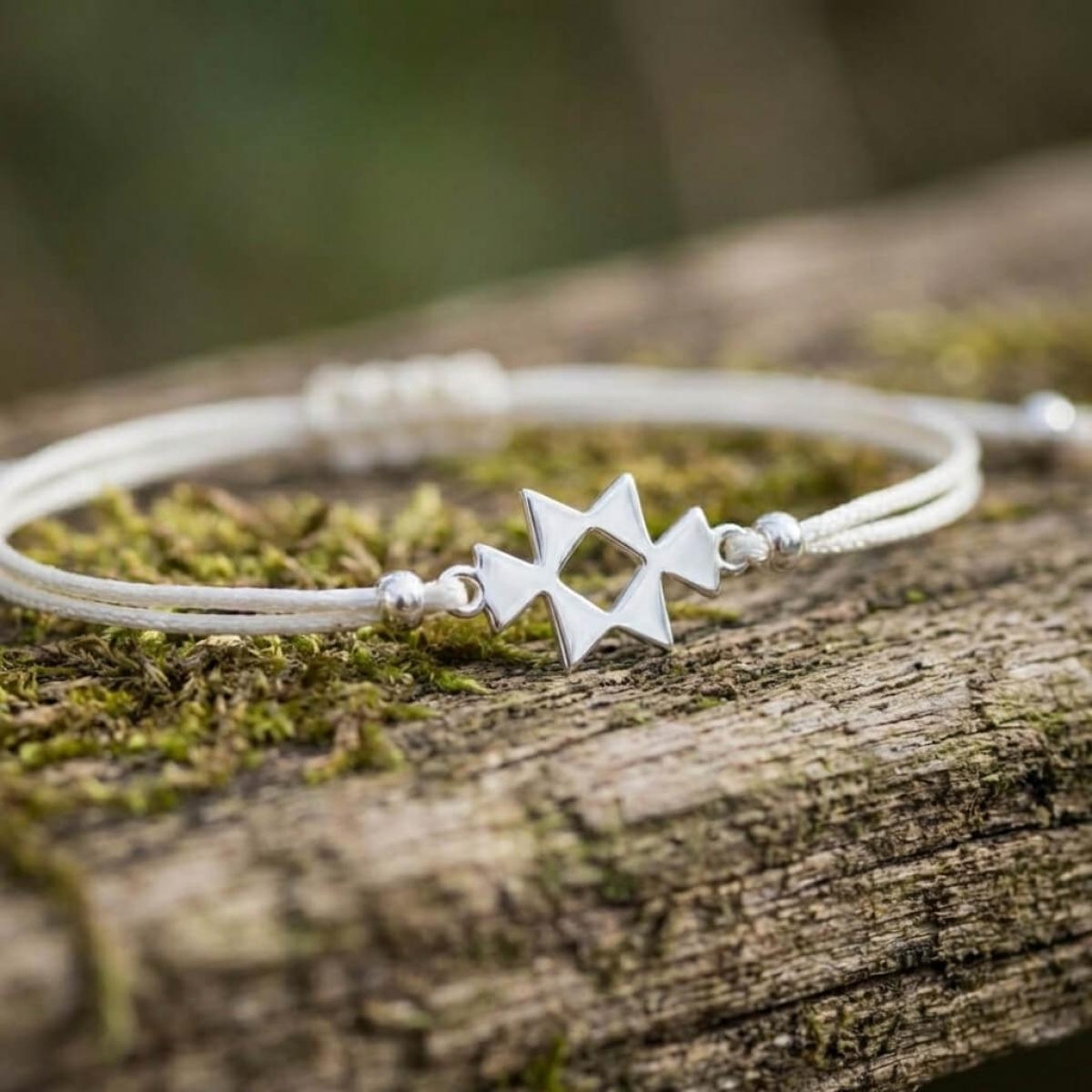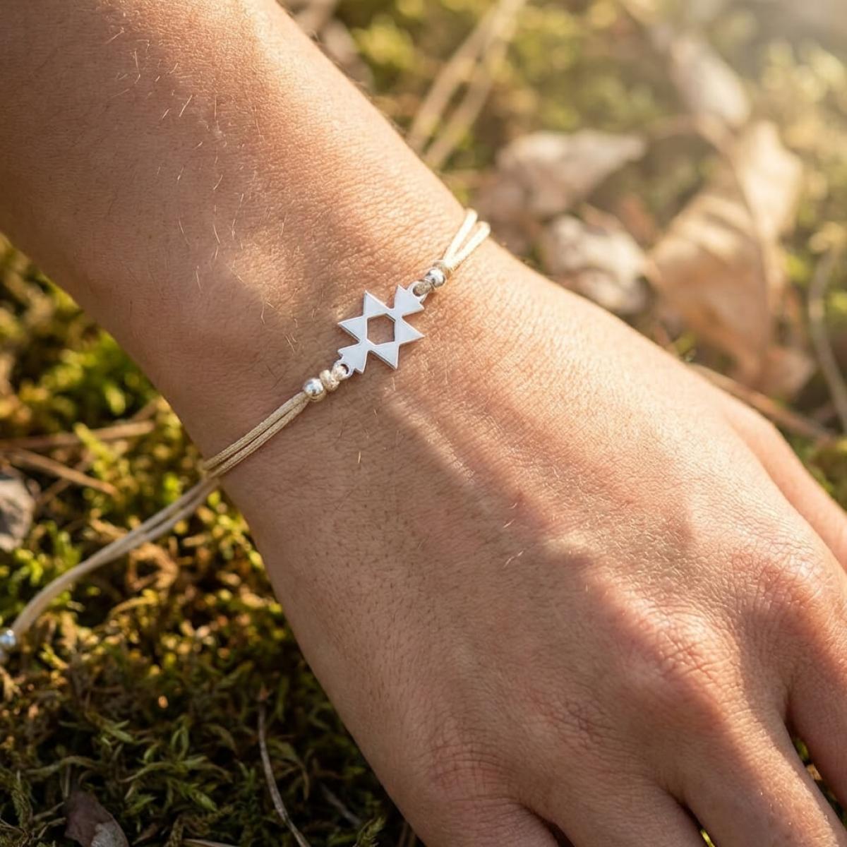 Акцентът в това стилно изделие е изработен от висококачествено сребро Проба 925. Както среброто, така и конецът е с отлично качество. Нишката е изработена от висок клас синтетика и се отличава с изключителна здравина. Конецът не се отпуска при мокрене, което ви позволява да се къпете с амулета. Синтетичните конци, с които работим, както и техните багрила, са напълно безопасни за здравето.