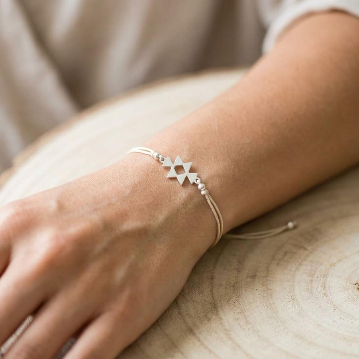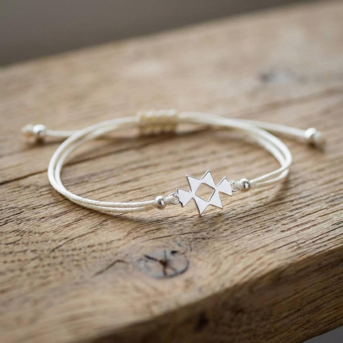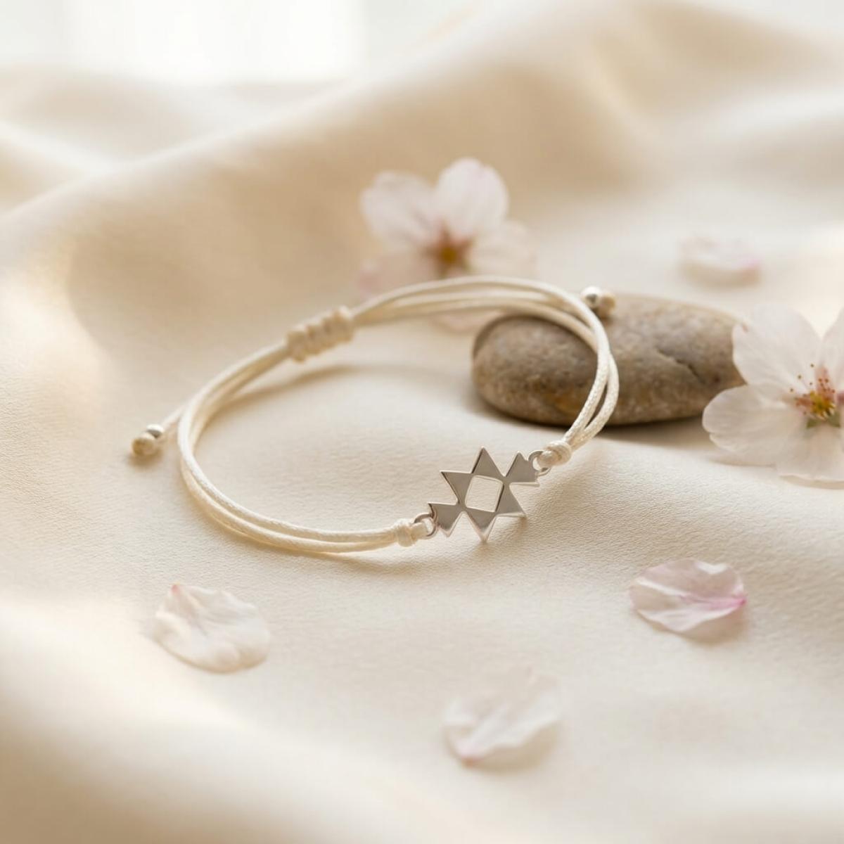 Акцентът в това стилно изделие е изработен от висококачествено сребро Проба 925. Както среброто, така и конецът е с отлично качество. Нишката е изработена от висок клас синтетика и се отличава с изключителна здравина. Конецът не се отпуска при мокрене, което ви позволява да се къпете с амулета. Синтетичните конци, с които работим, както и техните багрила, са напълно безопасни за здравето.