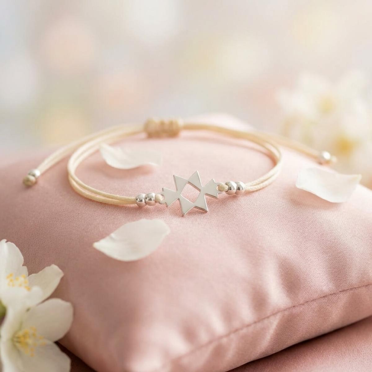 Това е една от нетрадиционните ни гривни с конци, която не се предлага в класическия червен цвят на конеца – от този вид имаме достатъчно превъзходни модели. Уникалното бижу-амулет може да се поръча в бял или черен цвят на връвта. Изберете цвета според предпочитанията на своята любима. Помислете какви цветове в облеклото и накитите предпочита тя – тъмни или светли?