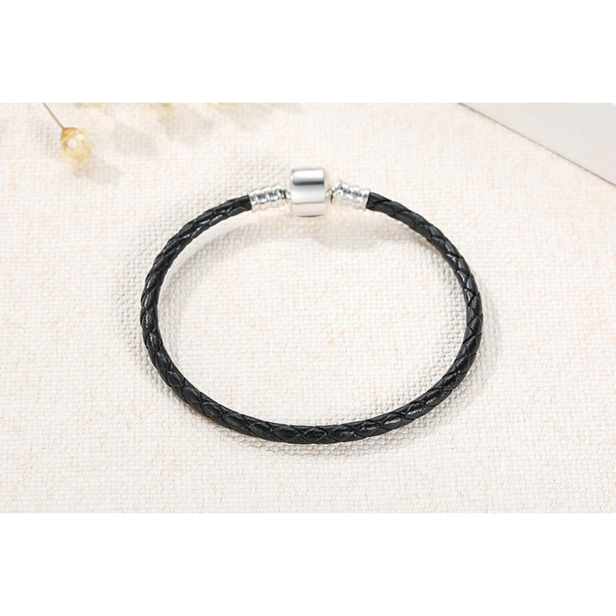 Черна кожена гривна със стабилна сребърна закопчалка- основа за окачване на различни елементи