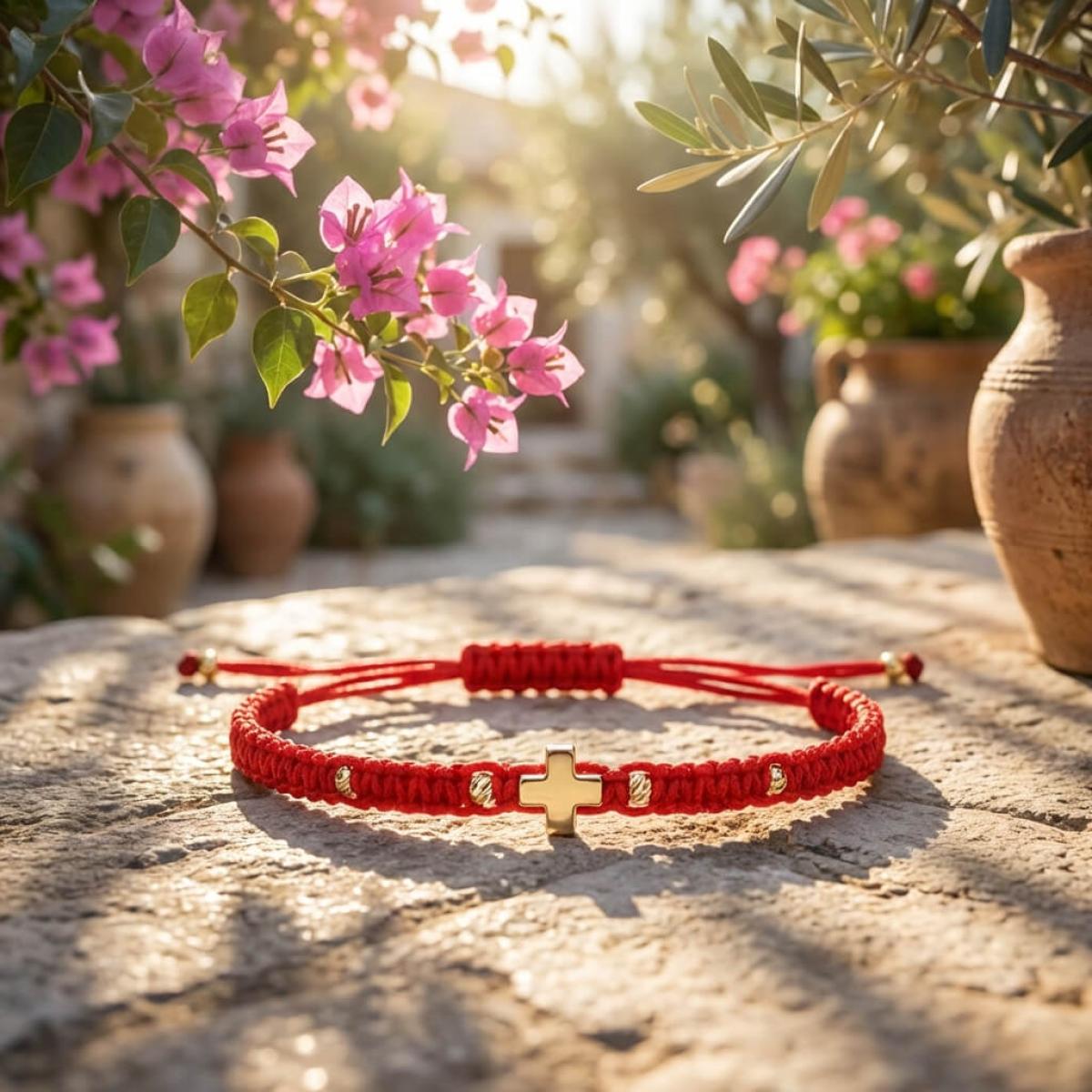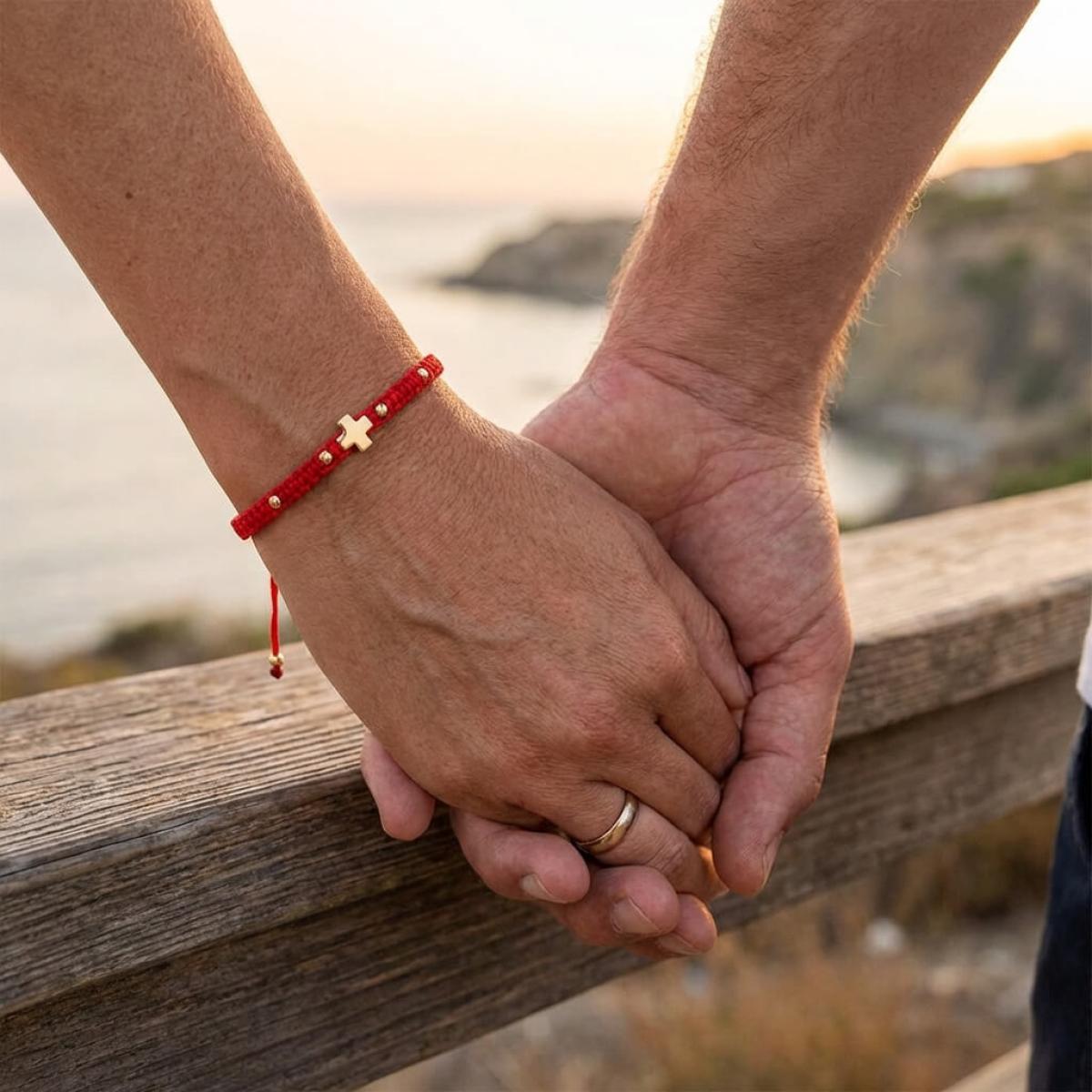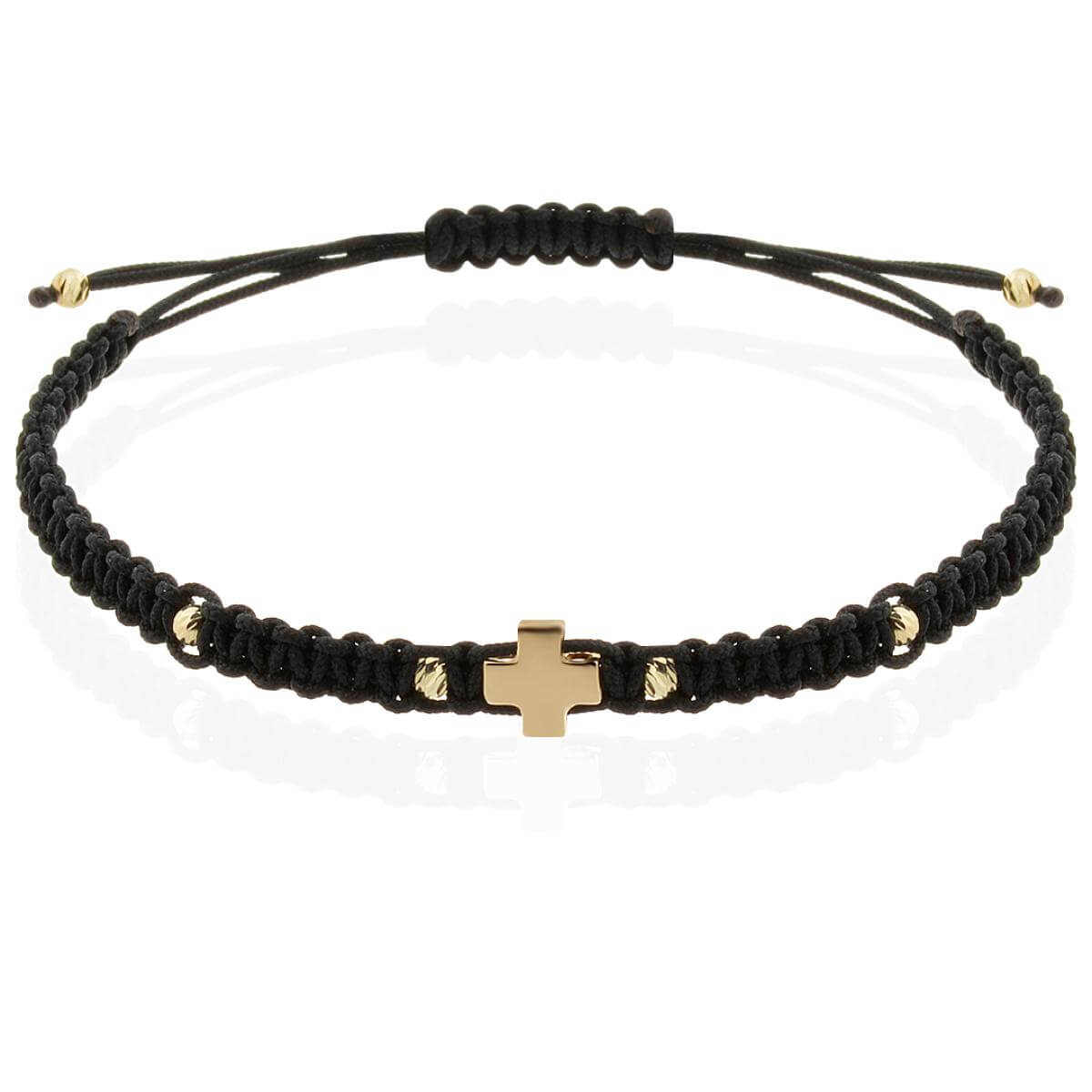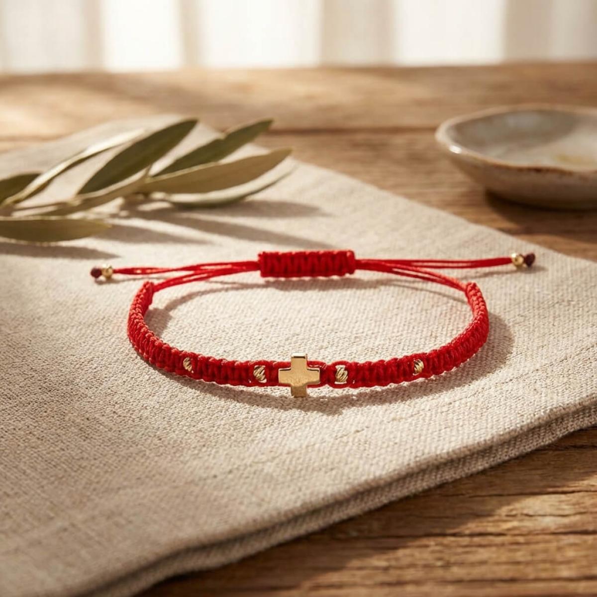 Гривна с червен конец и 14 карата златен елемент кръст B54CZ