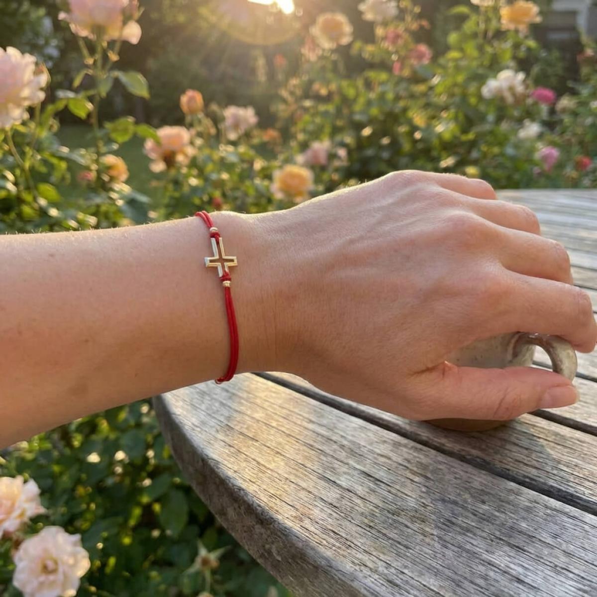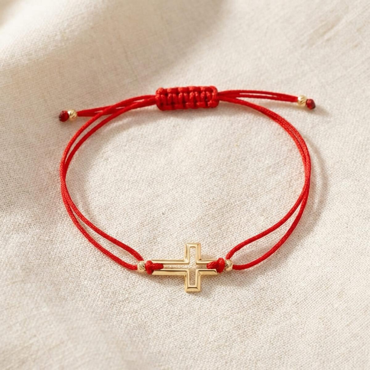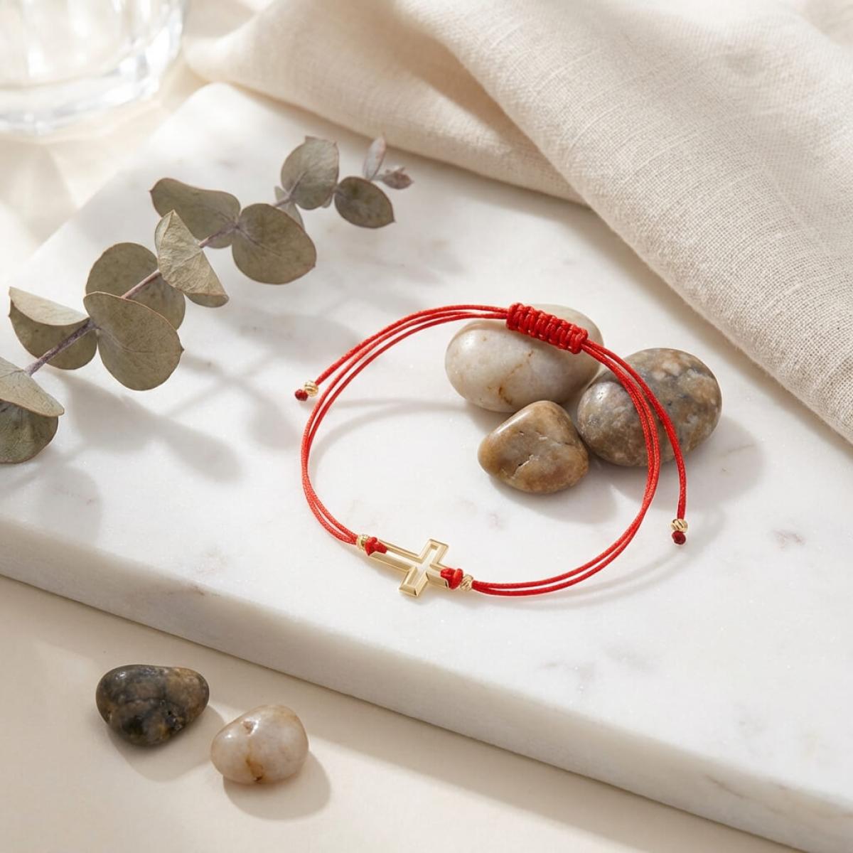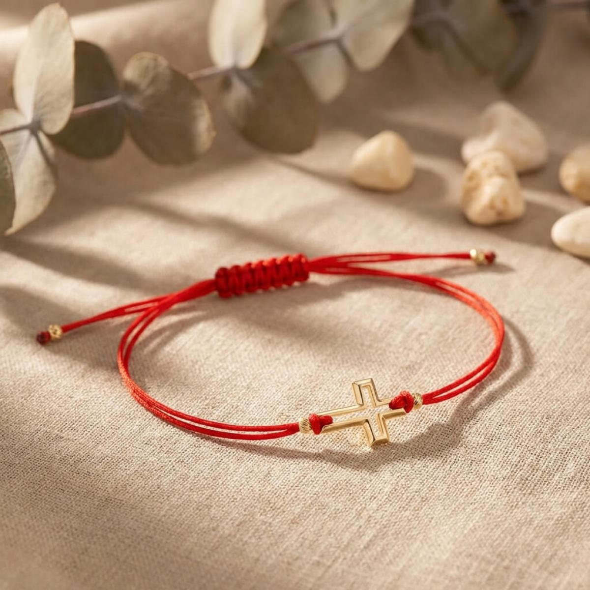 Гривна с червен конец и 14 карата златен елемент кръст B52