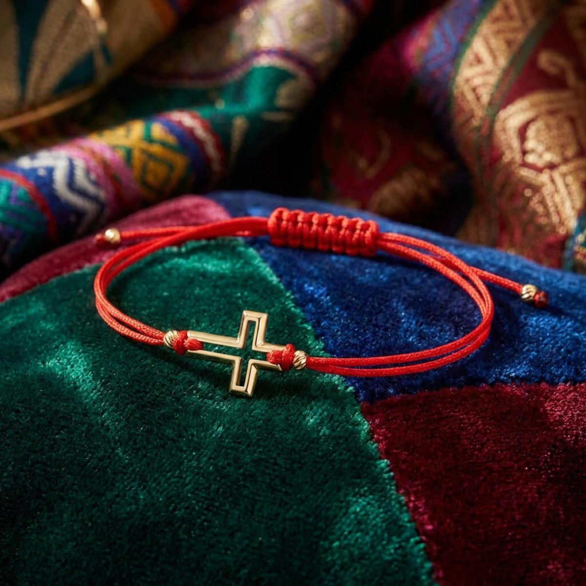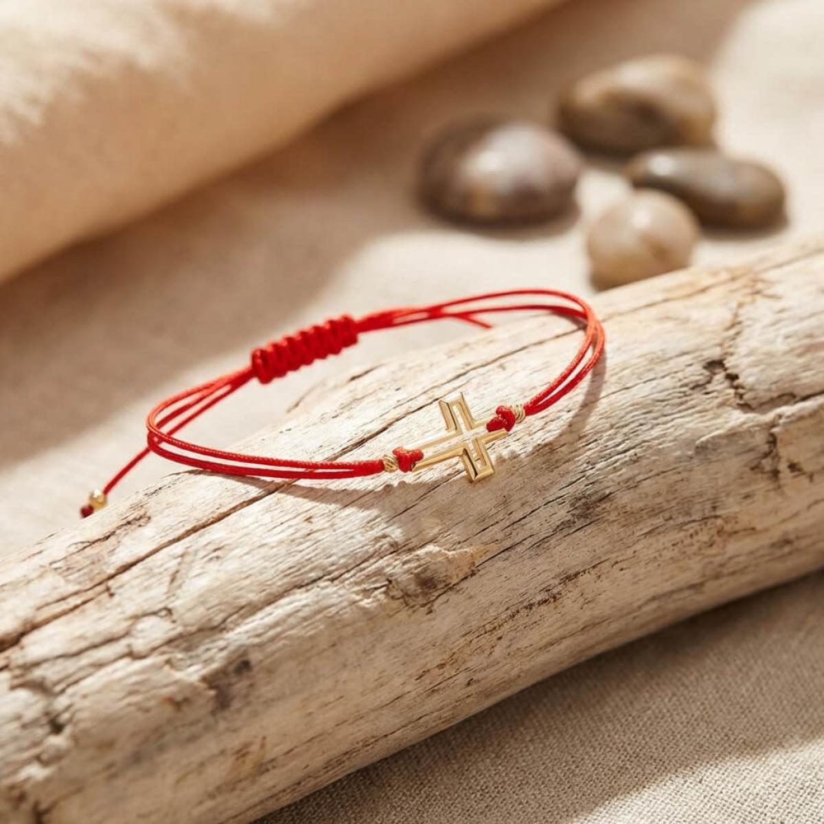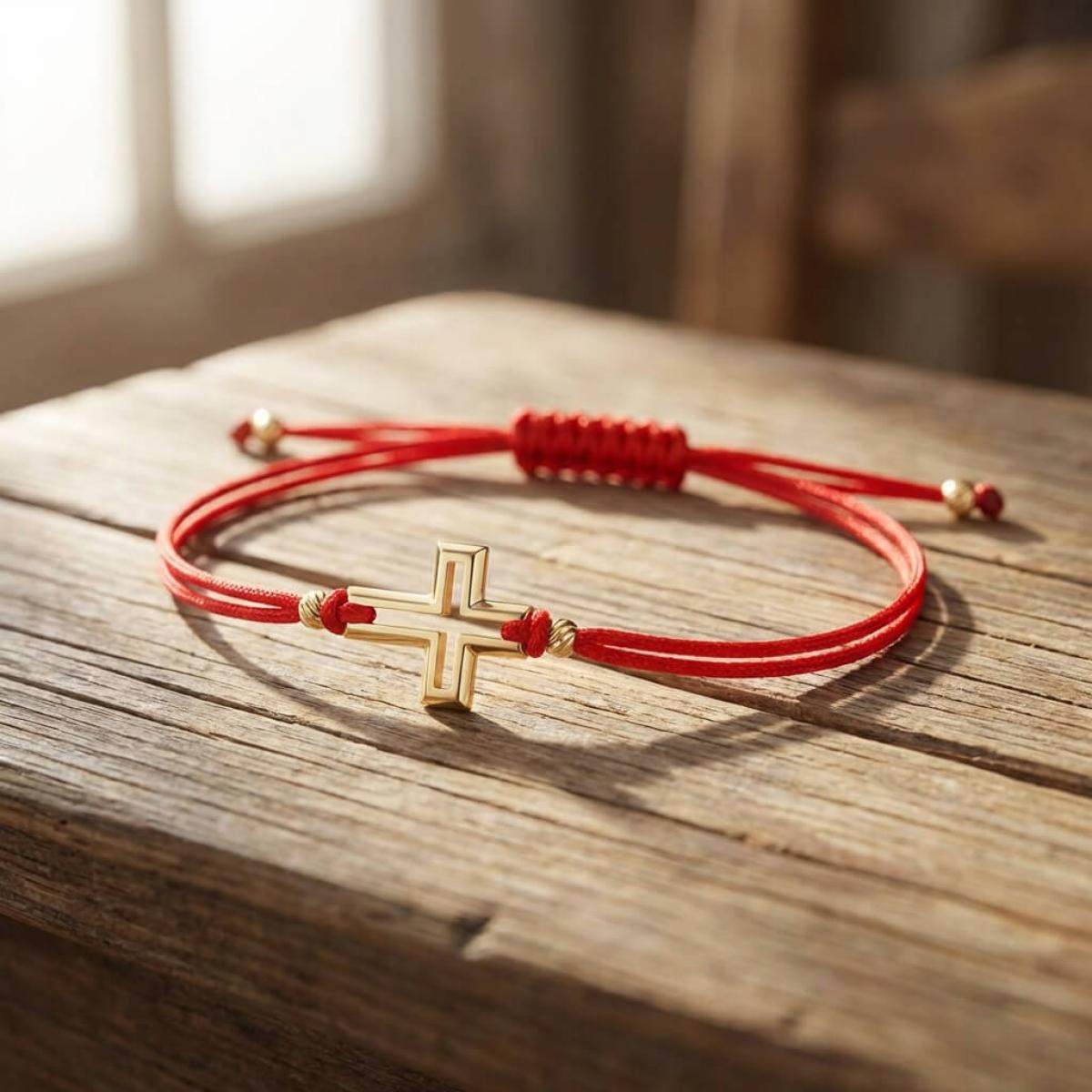 Гривна с червен конец и 14 карата златен елемент кръст B52