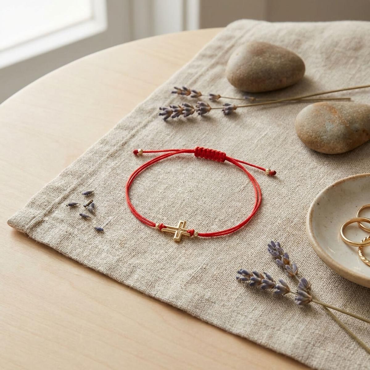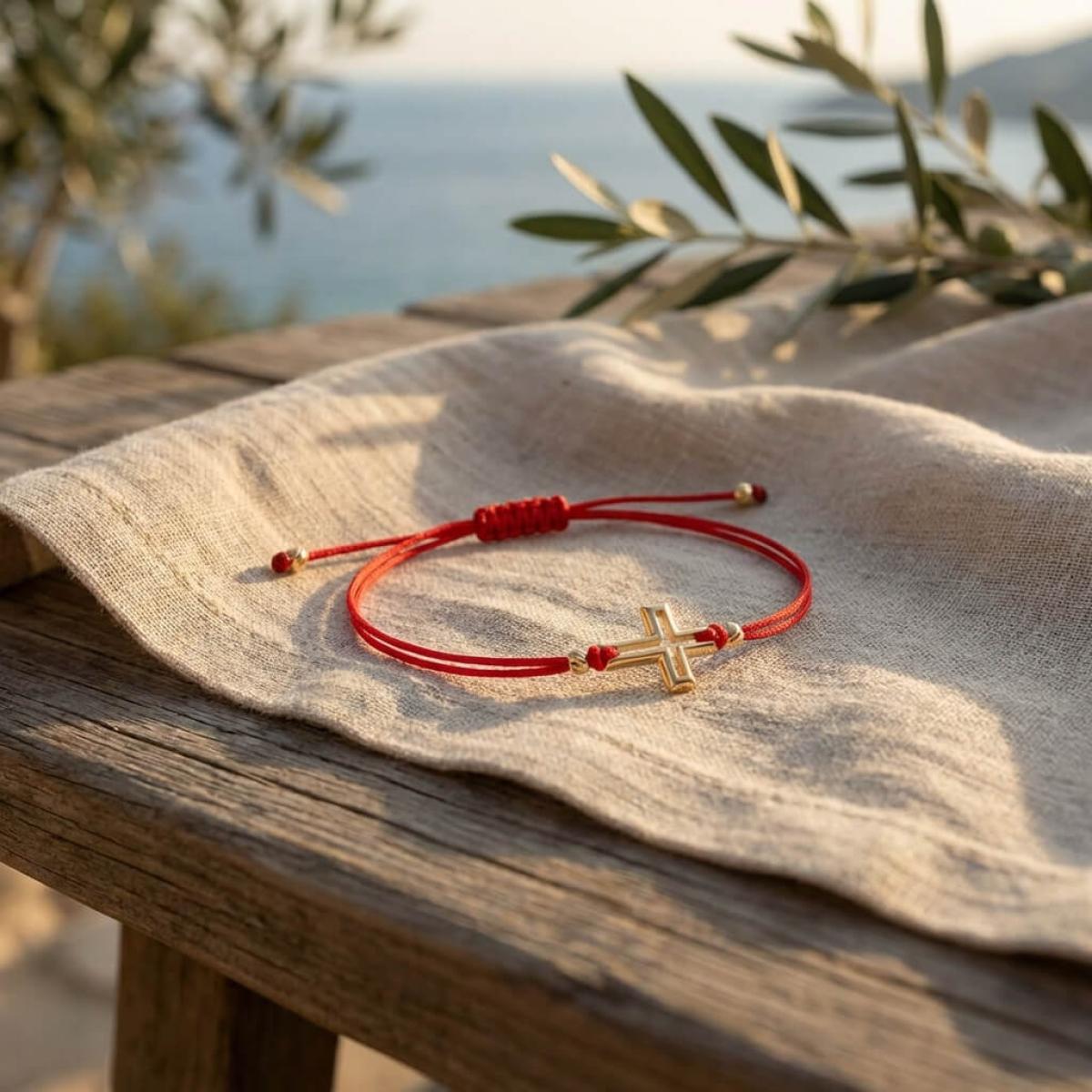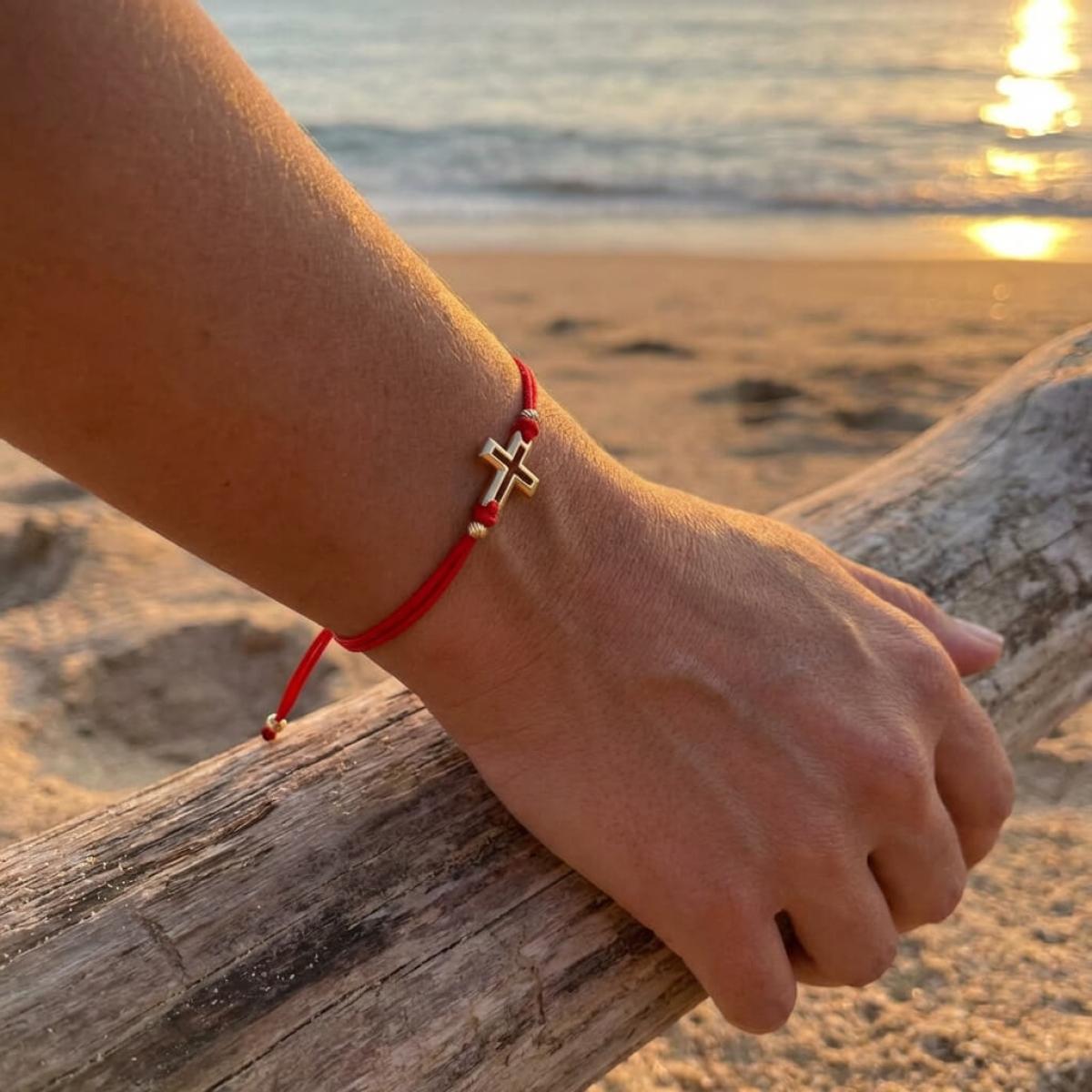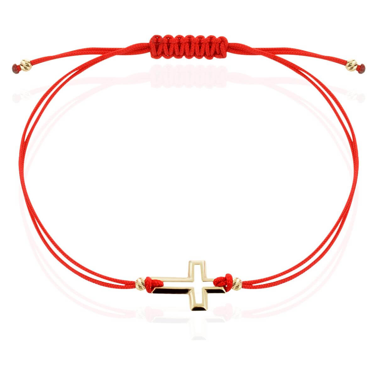 Гривна с червен конец и 14 карата златен елемент кръст B52