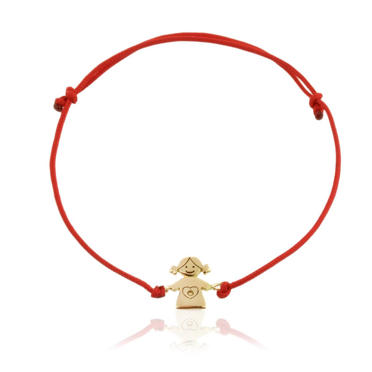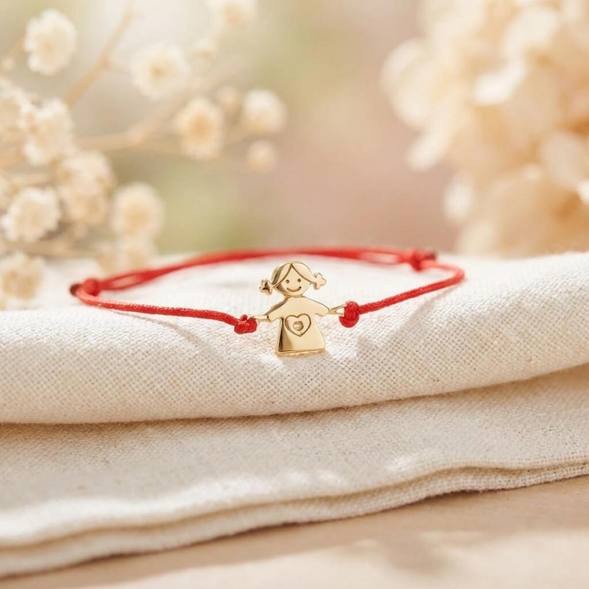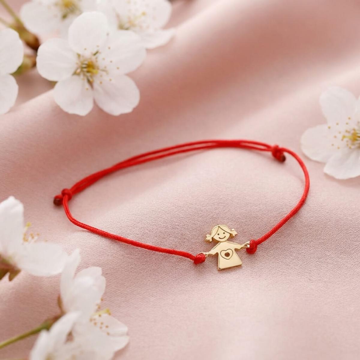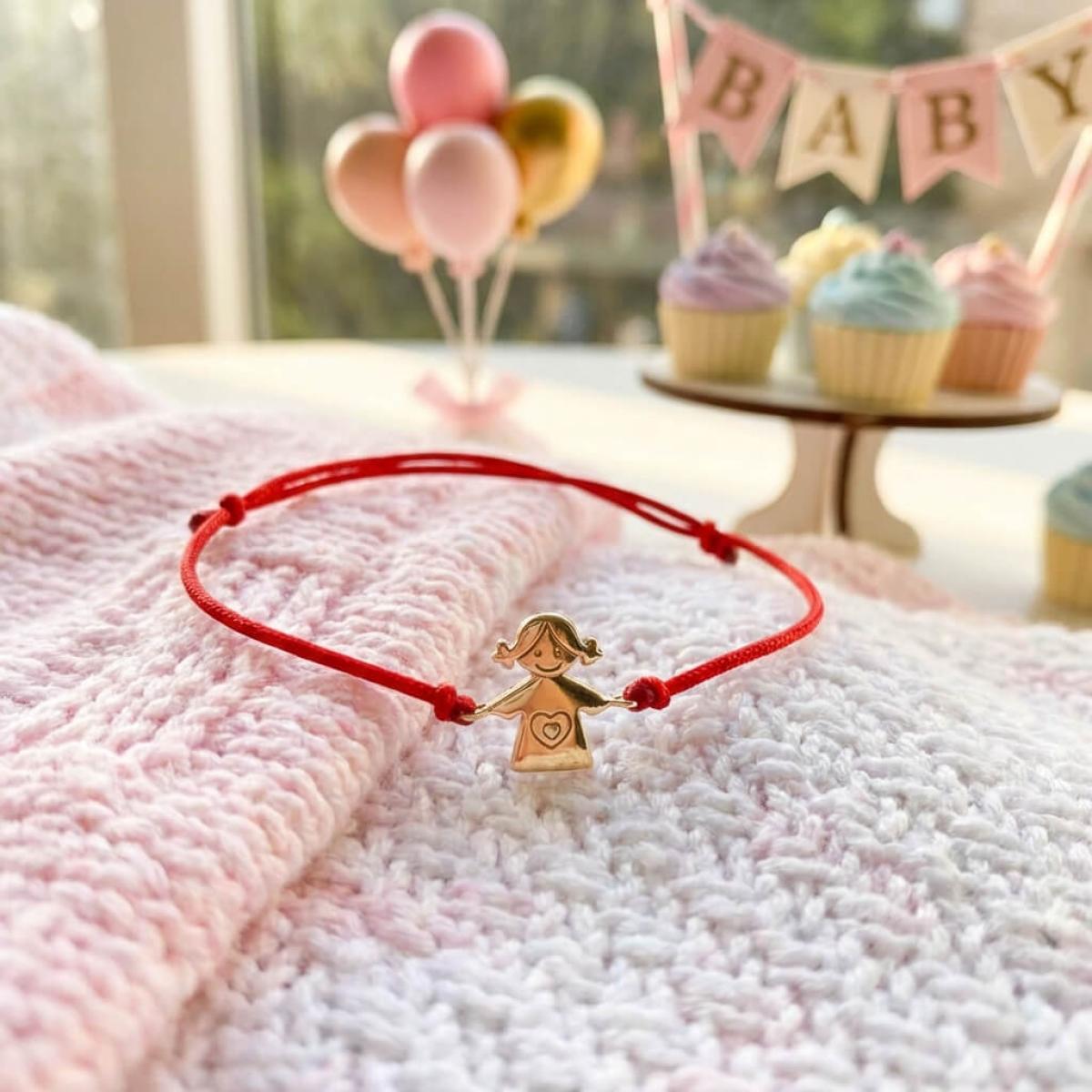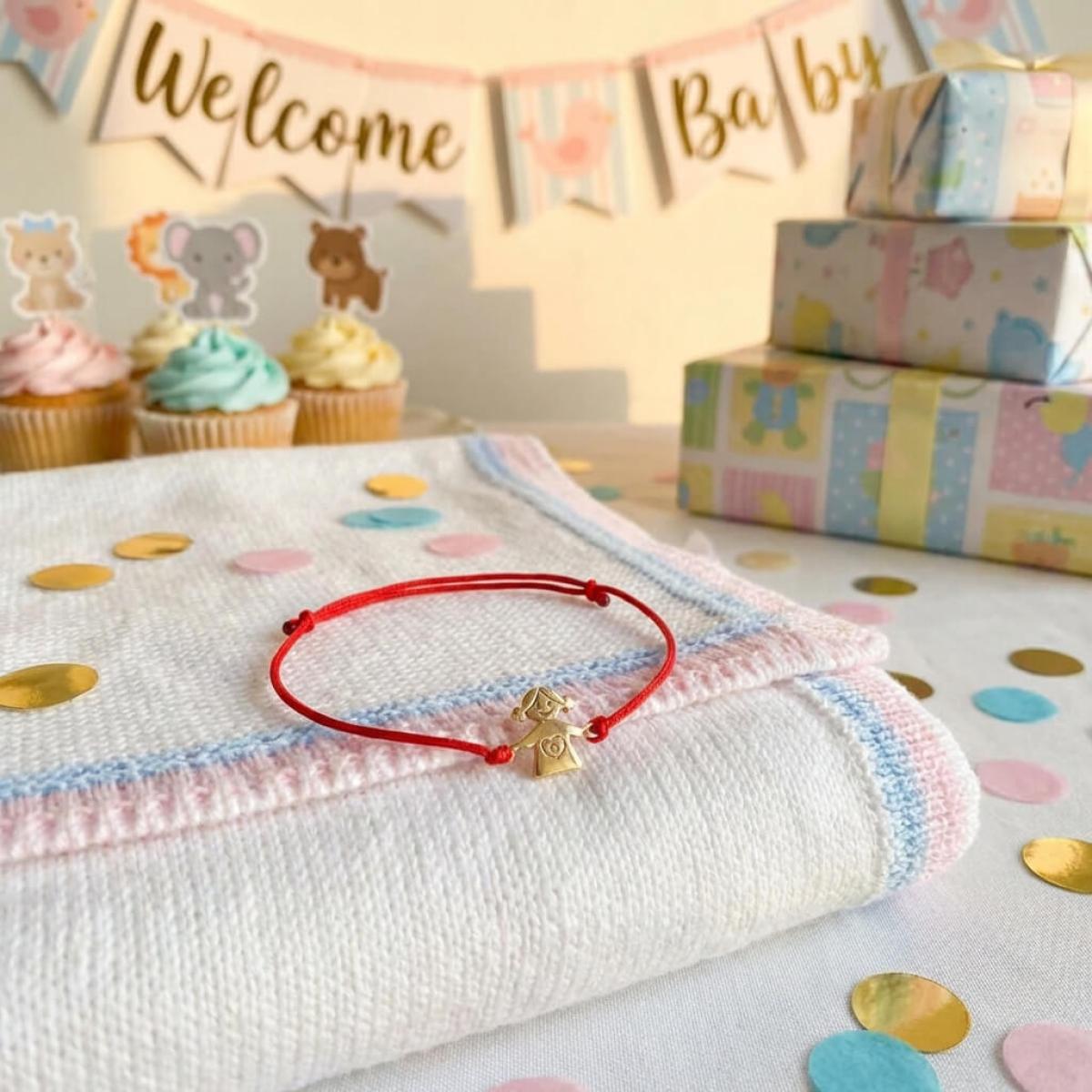Гривна с червен конец и 14 карата златен елемент момиченце