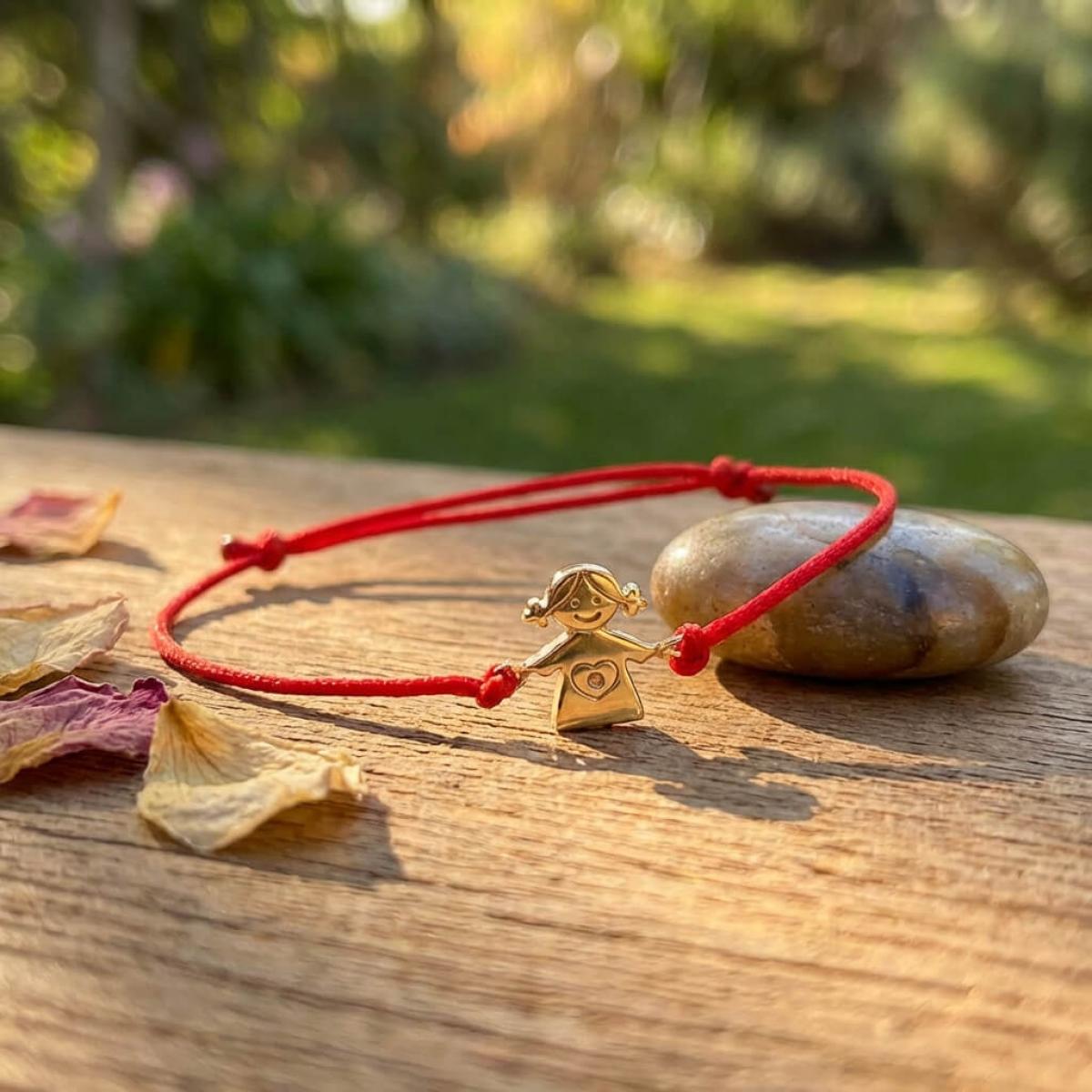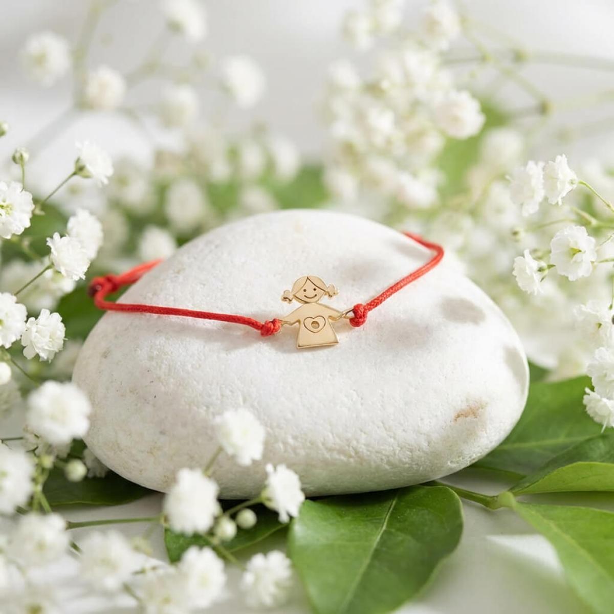 Подарък гривна с червен конец никога не е неуместен. Тук ви предлагаме едно изящно изделие, подходящо както за новородени момиченца, така и за майки на женски рожби. Това е един стилен амулет, който ще ви пази от лоши очи и нещастия. Специалният акцент в изделието е златната фигурка, която ще гравираме за вас напълно безплатно.
