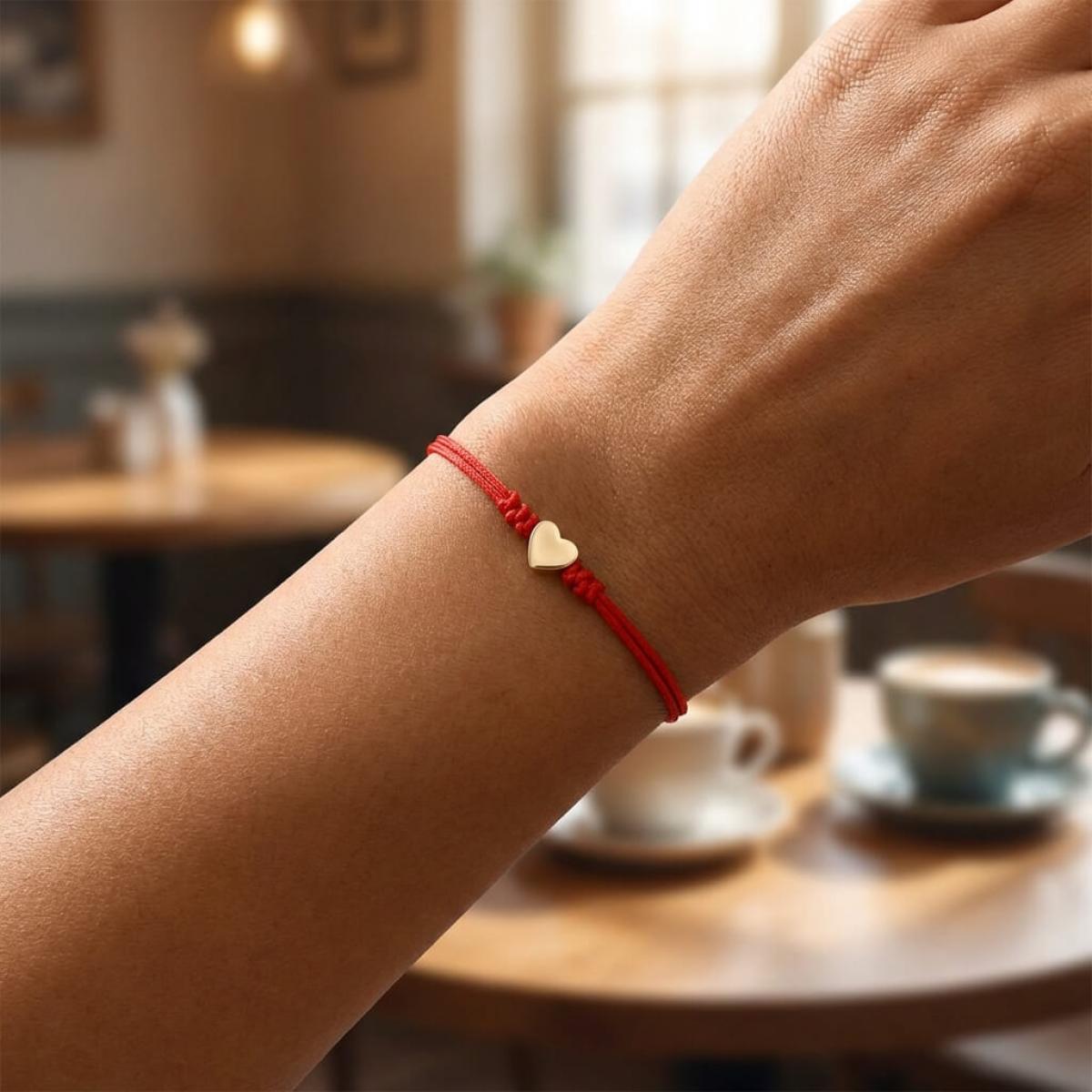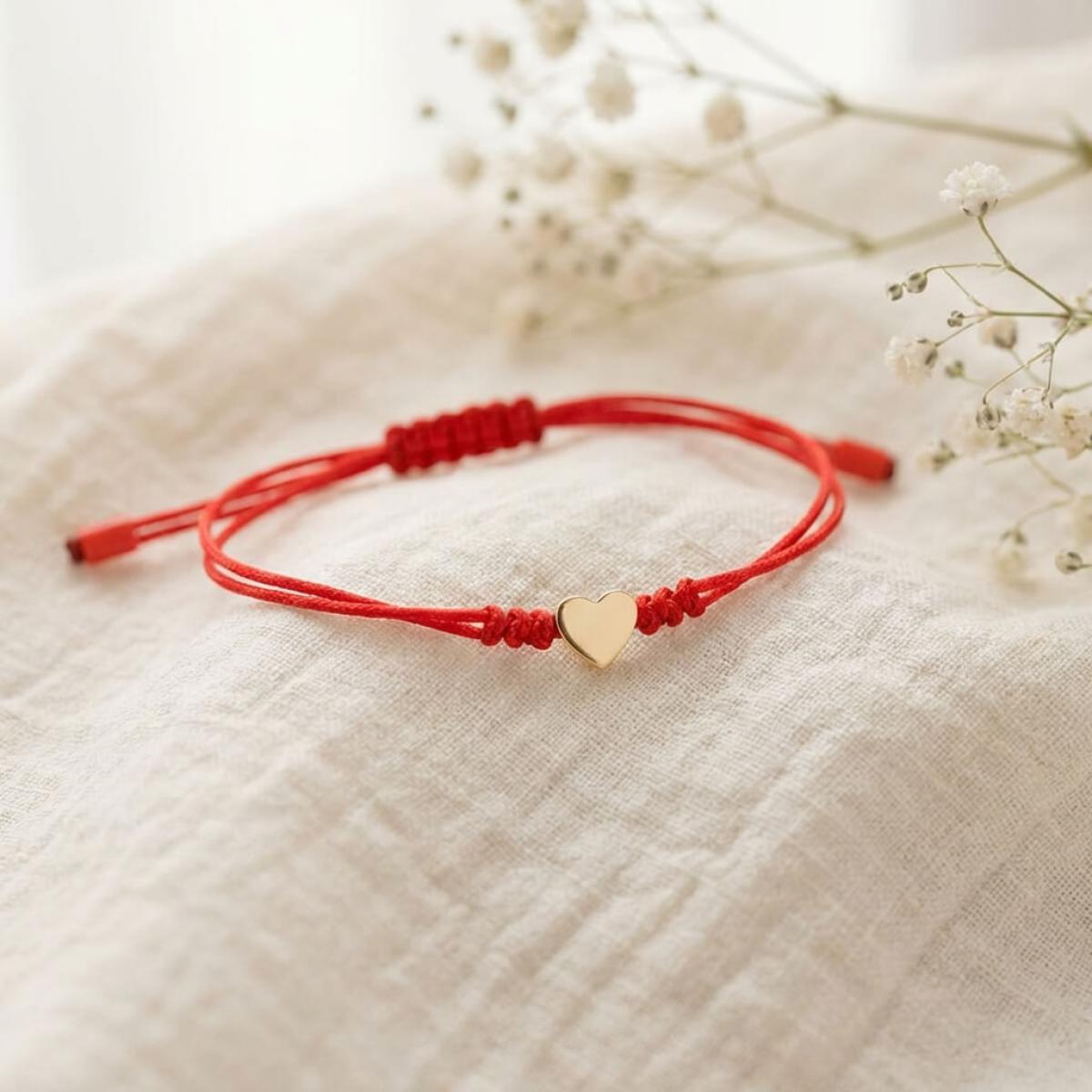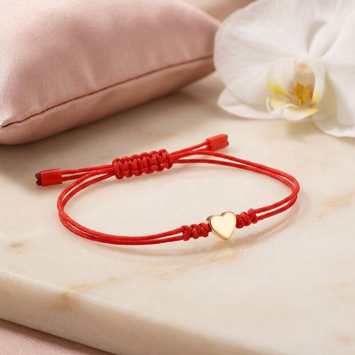 Гривна с червен конец и 14 карата златен елемент сърце