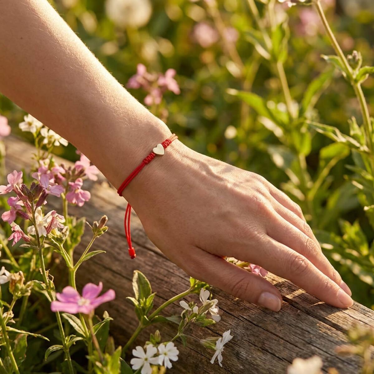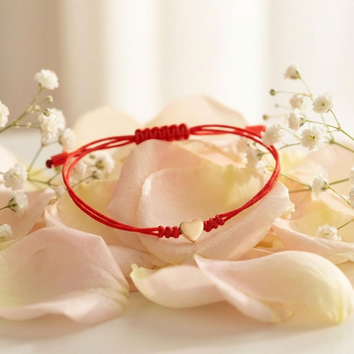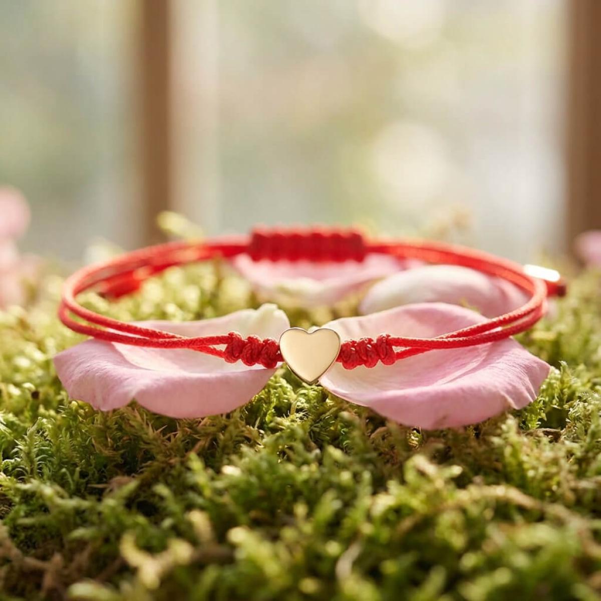 Гривна с червен конец и 14 карата златен елемент сърце