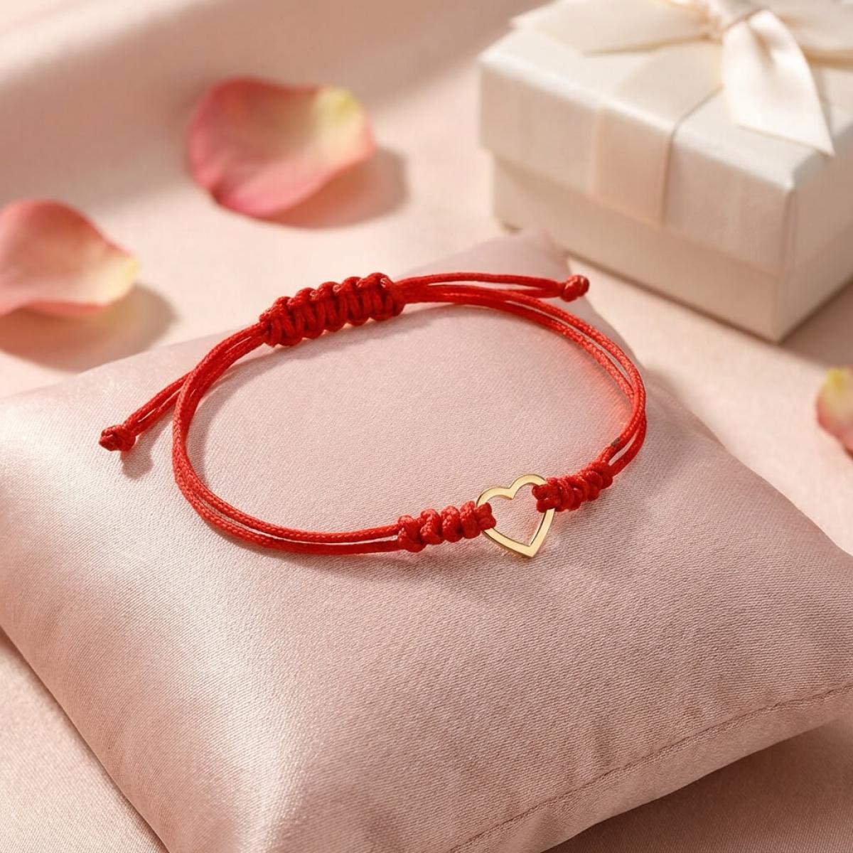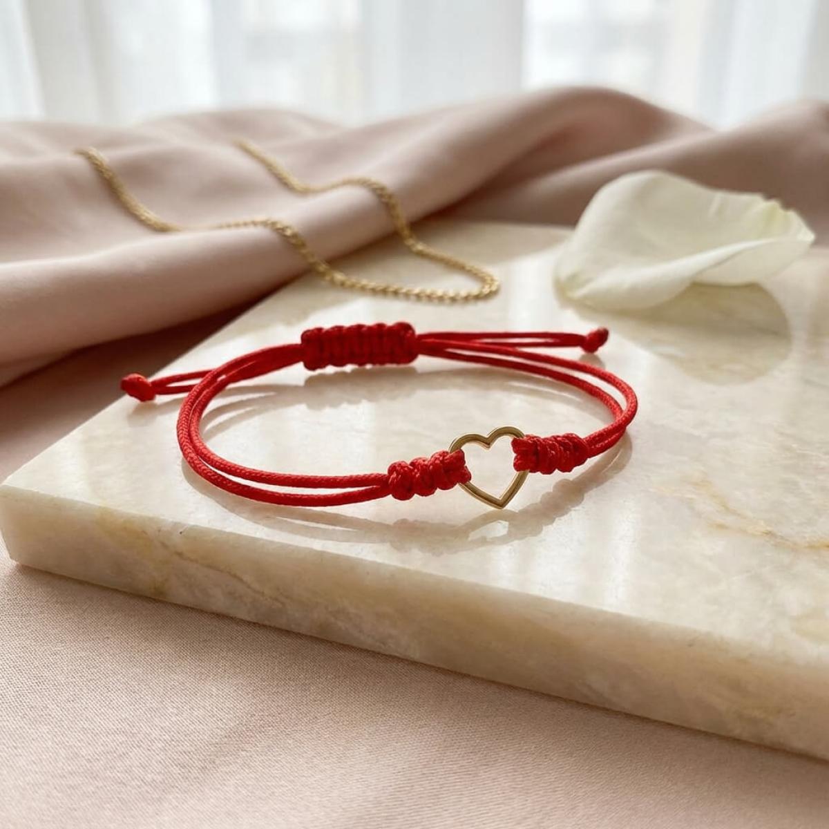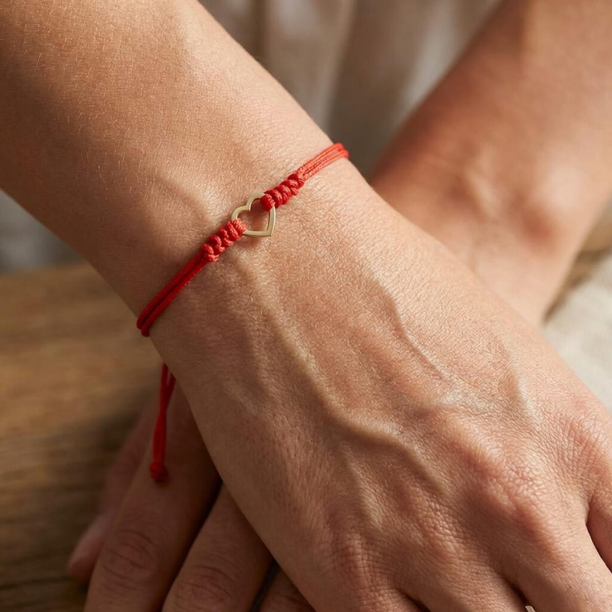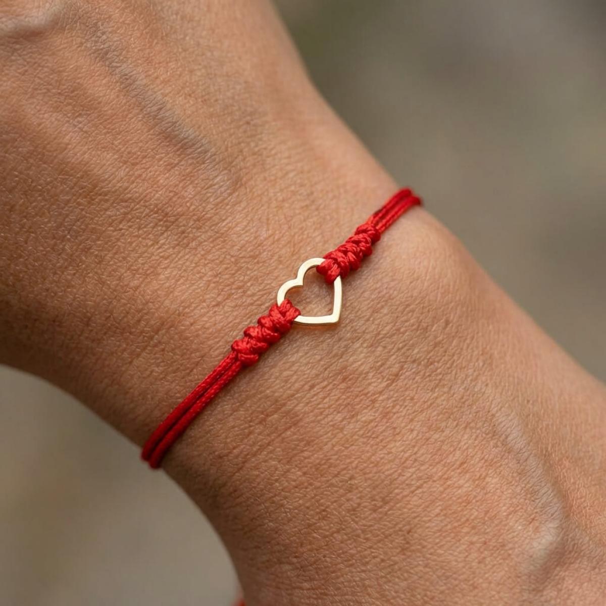 Гривна с червен конец и 14 карата златен елемент сърце