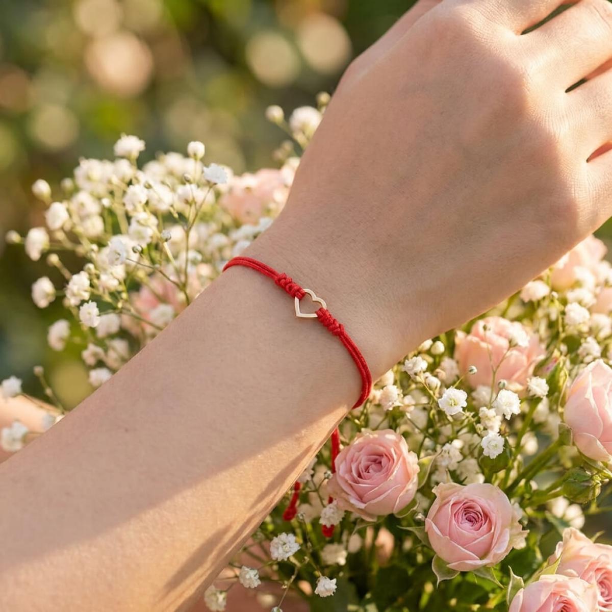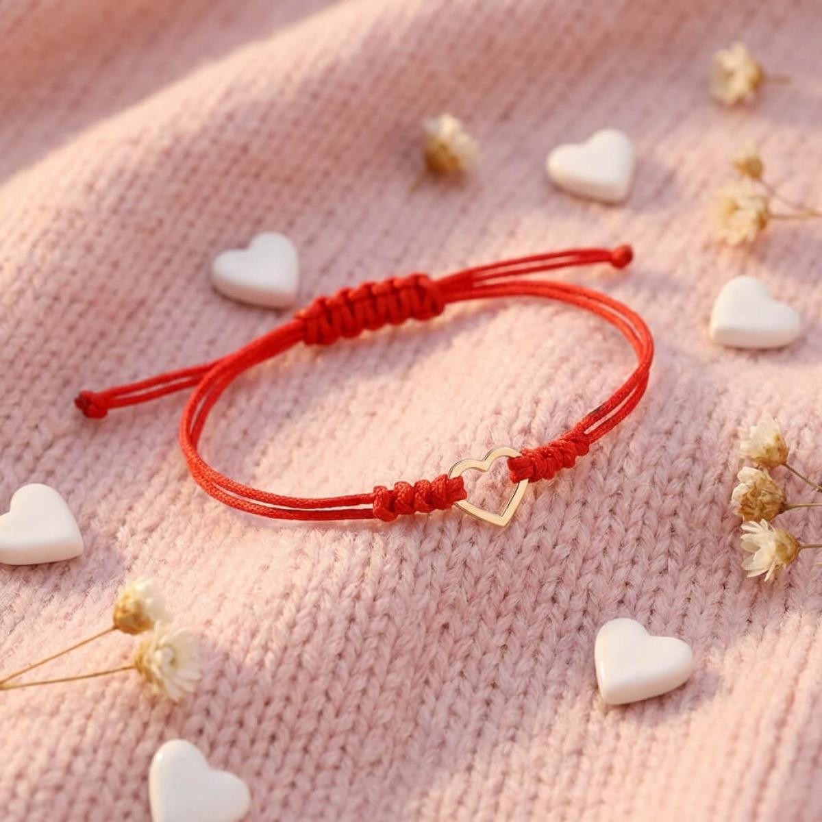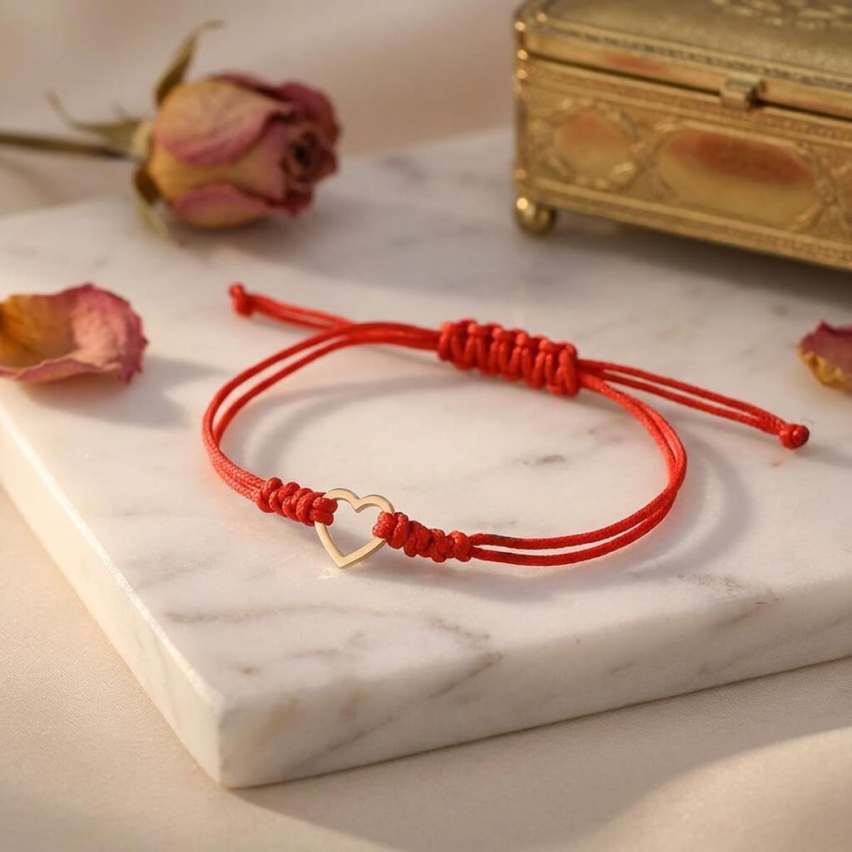 Гривна с червен конец и 14 карата златен елемент сърце