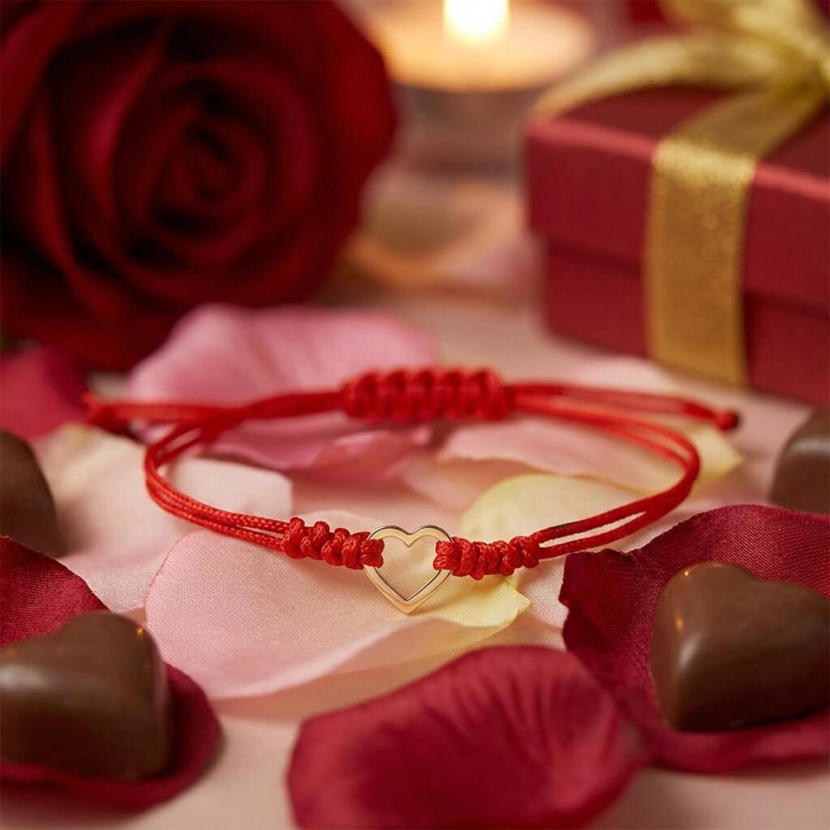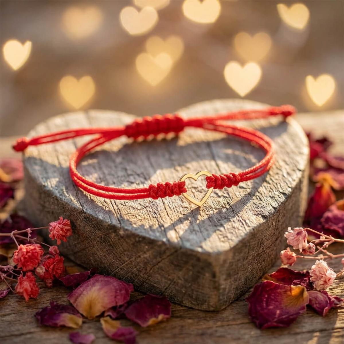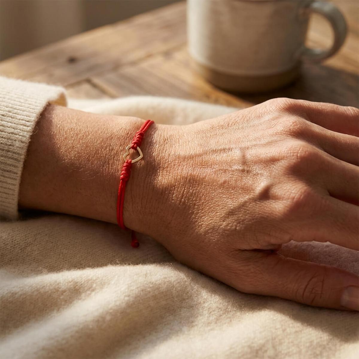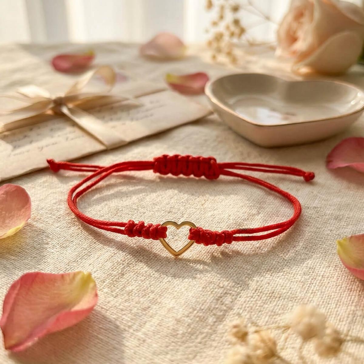 Гривна с червен конец и 14 карата златен елемент сърце