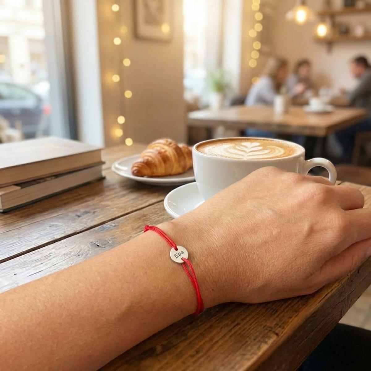 Гривна с червен конец и сребърно кръгче с гравиране по избор