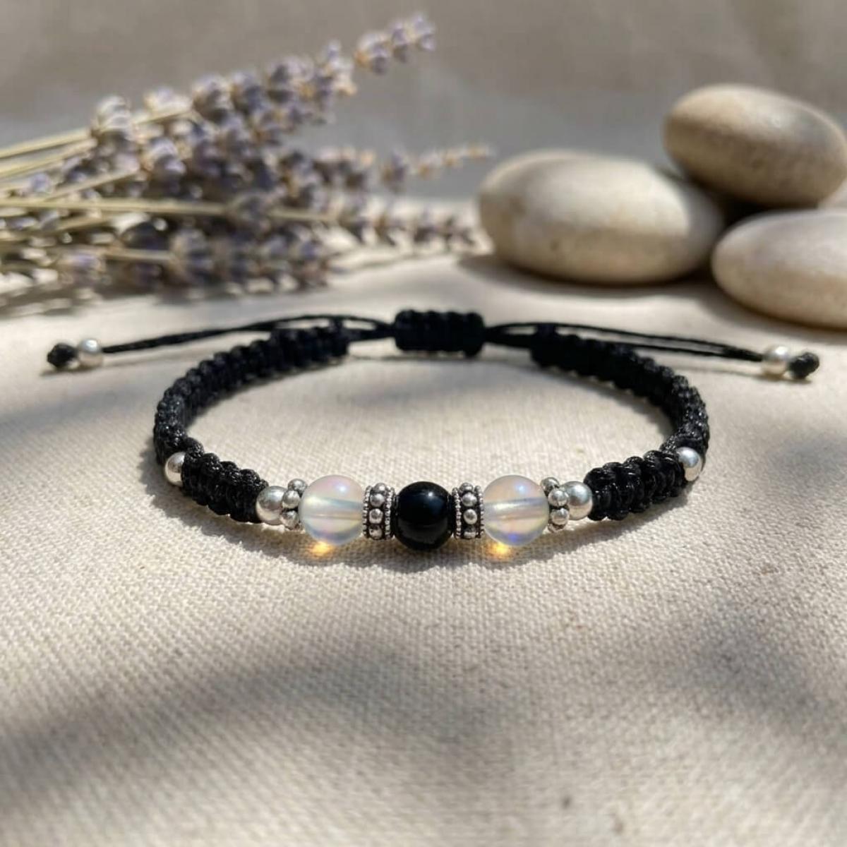 Тази изящна гривна комбинира фини сребърни топчета (проба 925) с мъниста в различни цветове, които нежно преливат в различни нюанси според светлината. Игривите отблясъци създават усещане за магия и уникалност, а сребърните елементи придават изтънчен лукс.