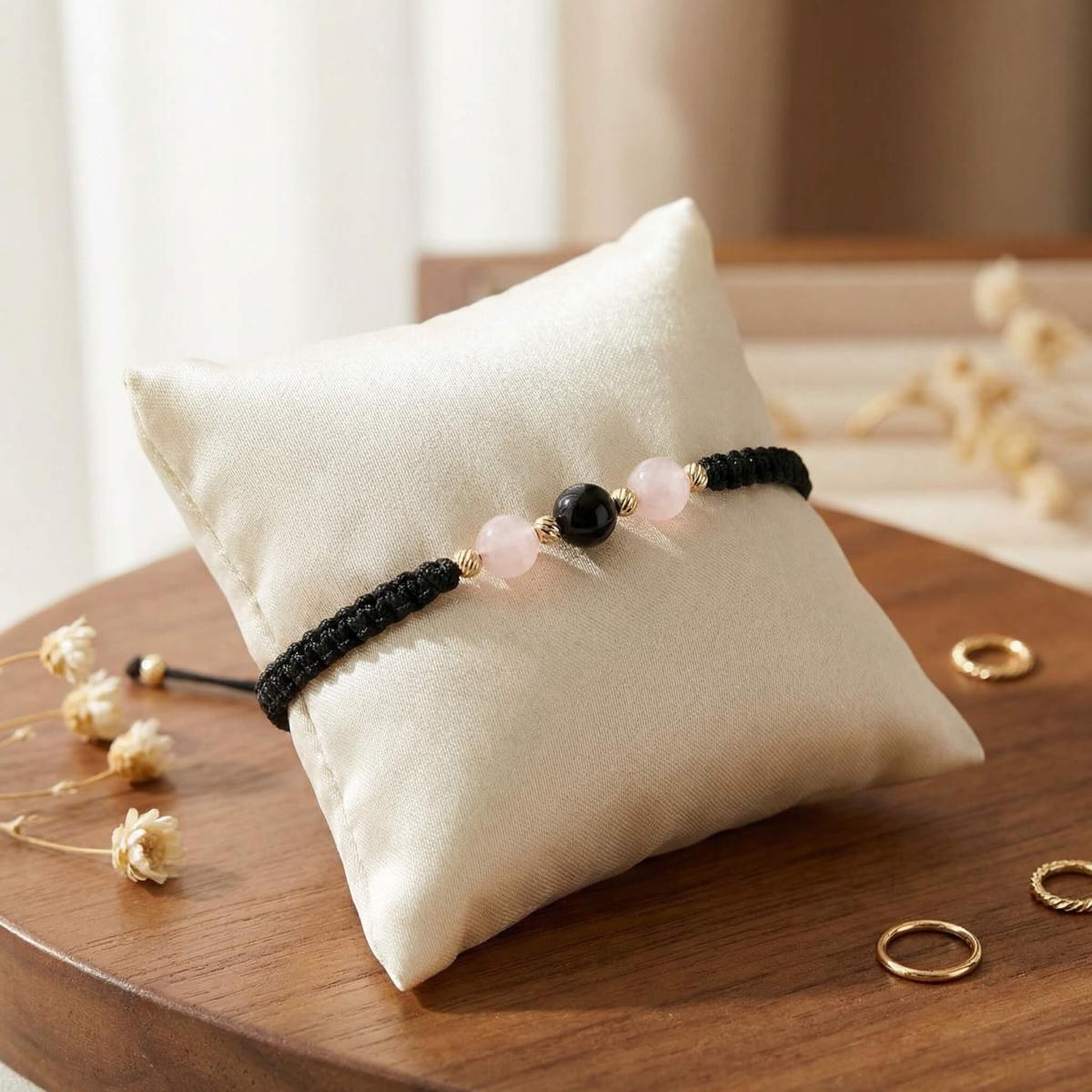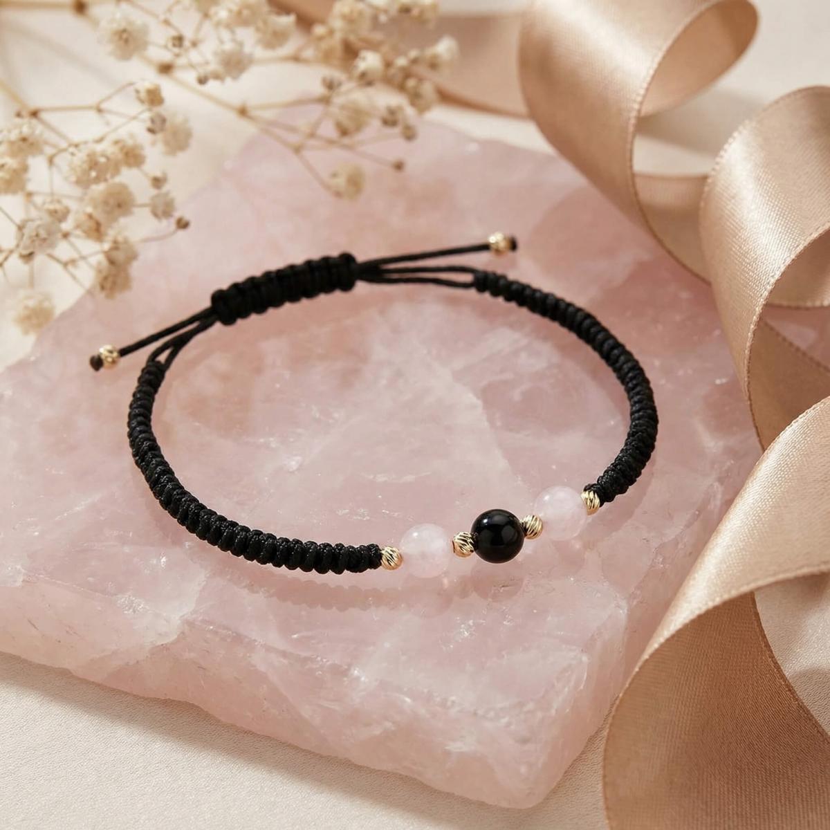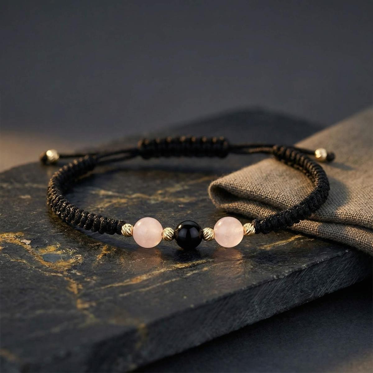- Златните 14-каратови топчета свързват и балансират тези две сили. Златото е символ на вътрешна светлина, устойчивост и лична стойност. То усилва вибрацията на кристалите и "запечатва" намерението на амулета - защитена любов.