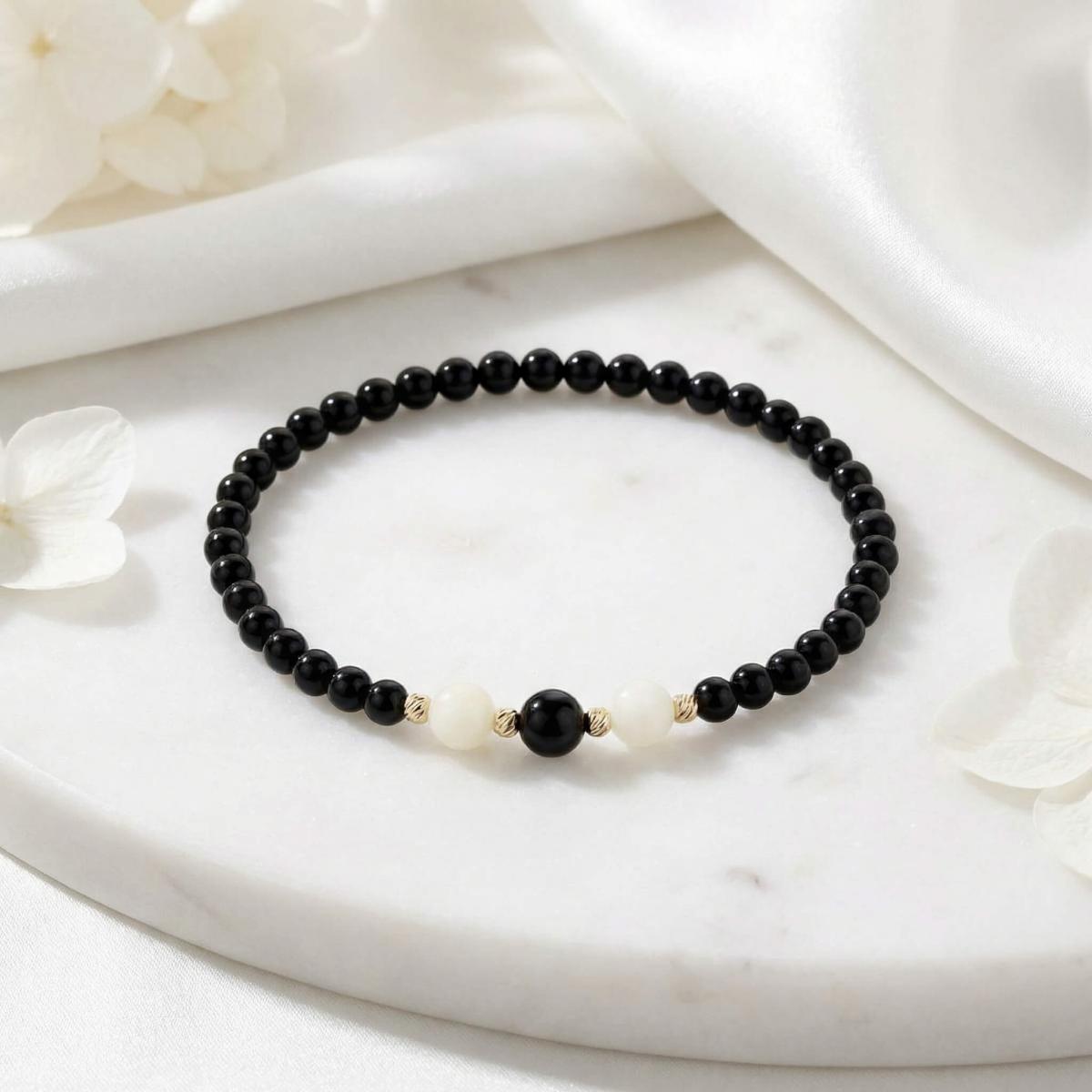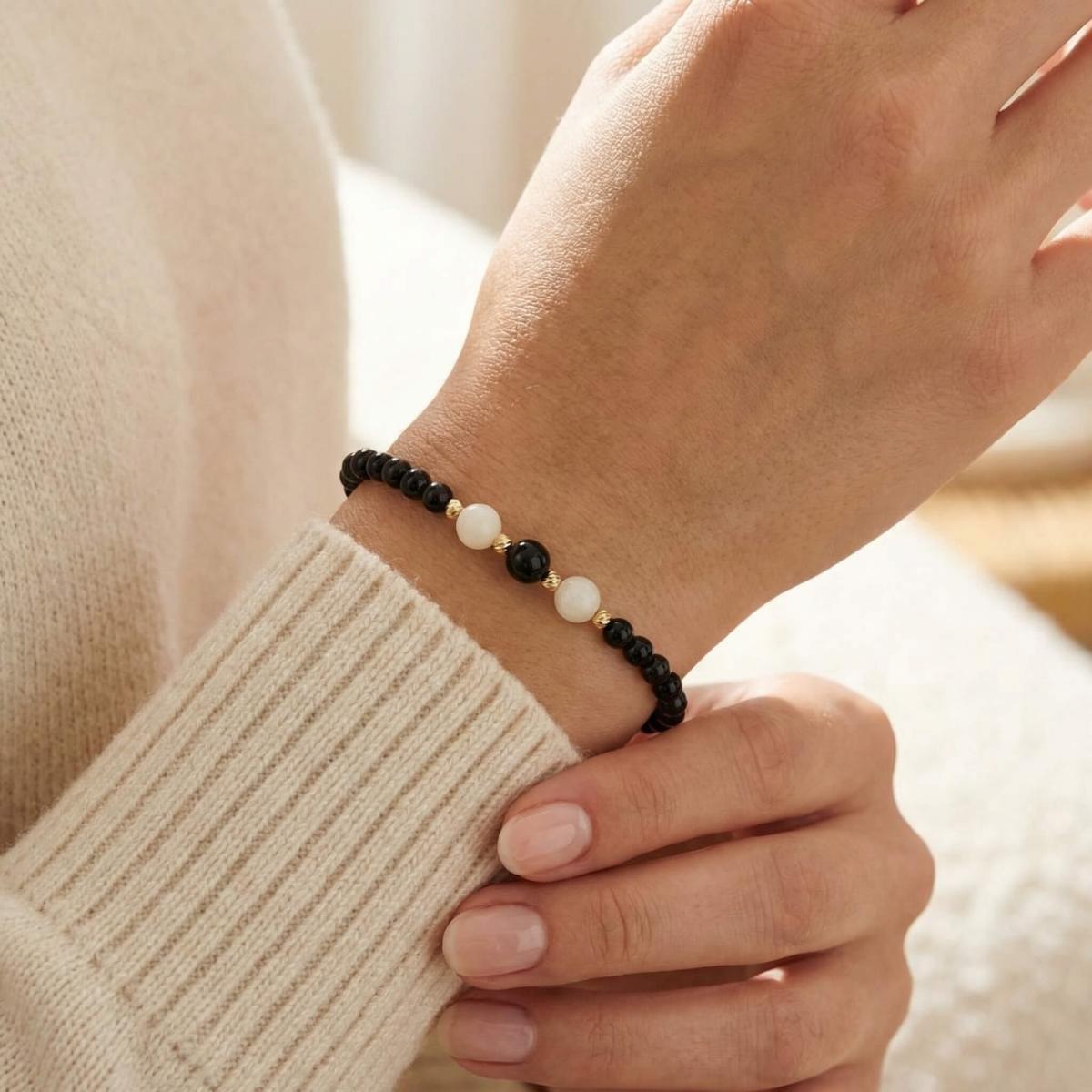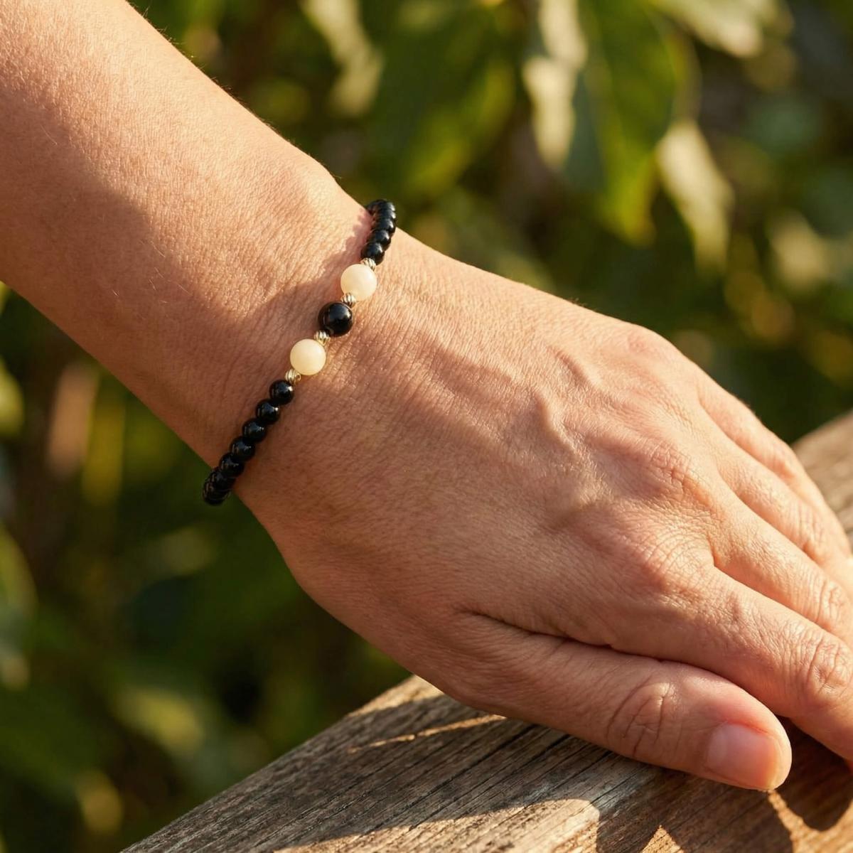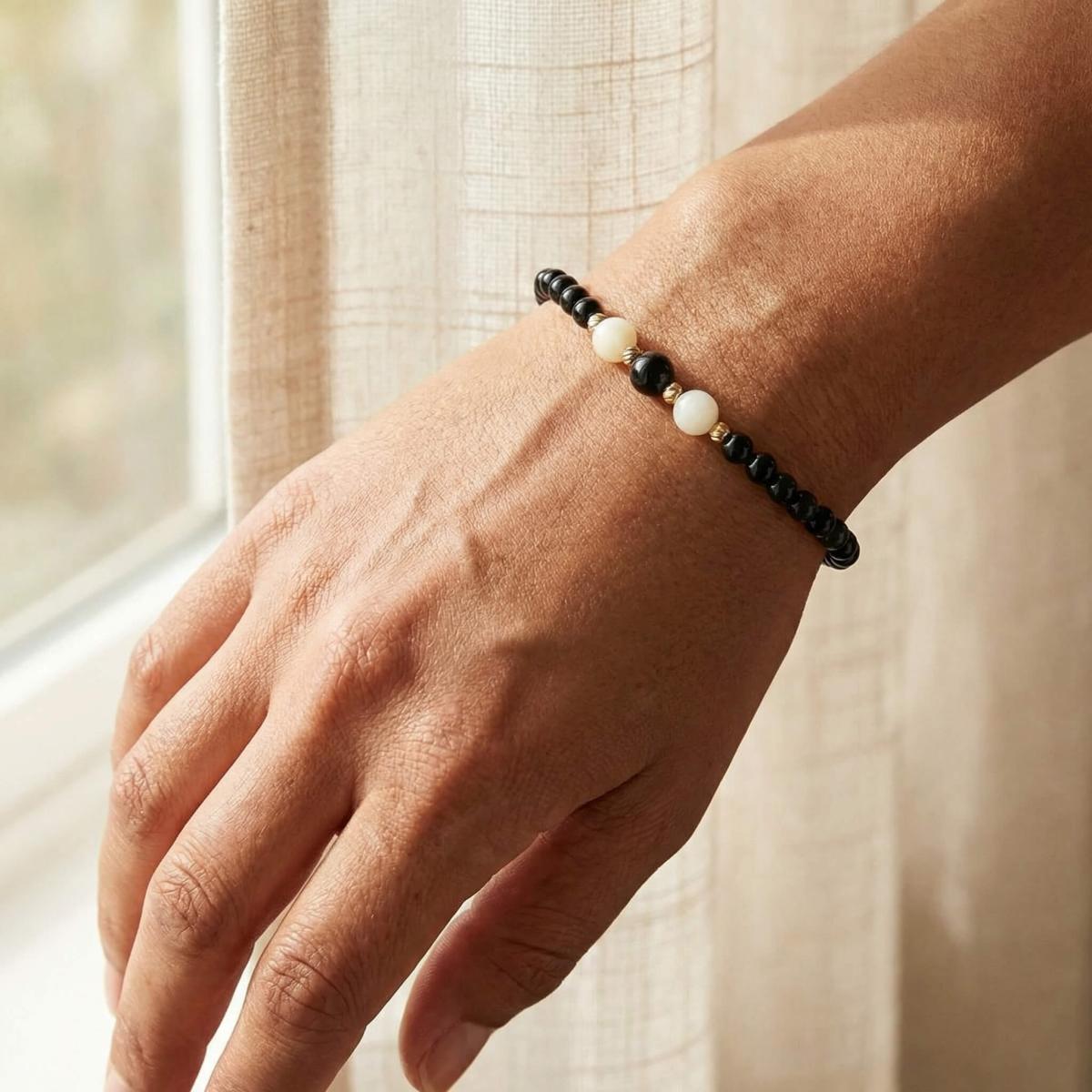 Тази гривна е създадена като символ на защита, яснота и вътрешна стабилност. Минималистична по форма, но дълбока по смисъл, тя носи силата на 3 елемента, които действат в съвършено равновесие: