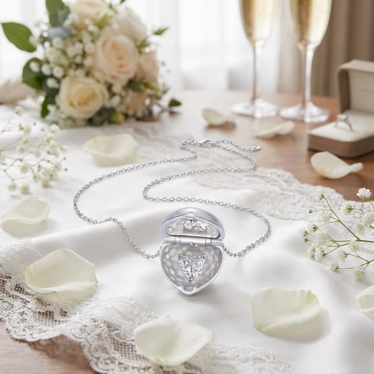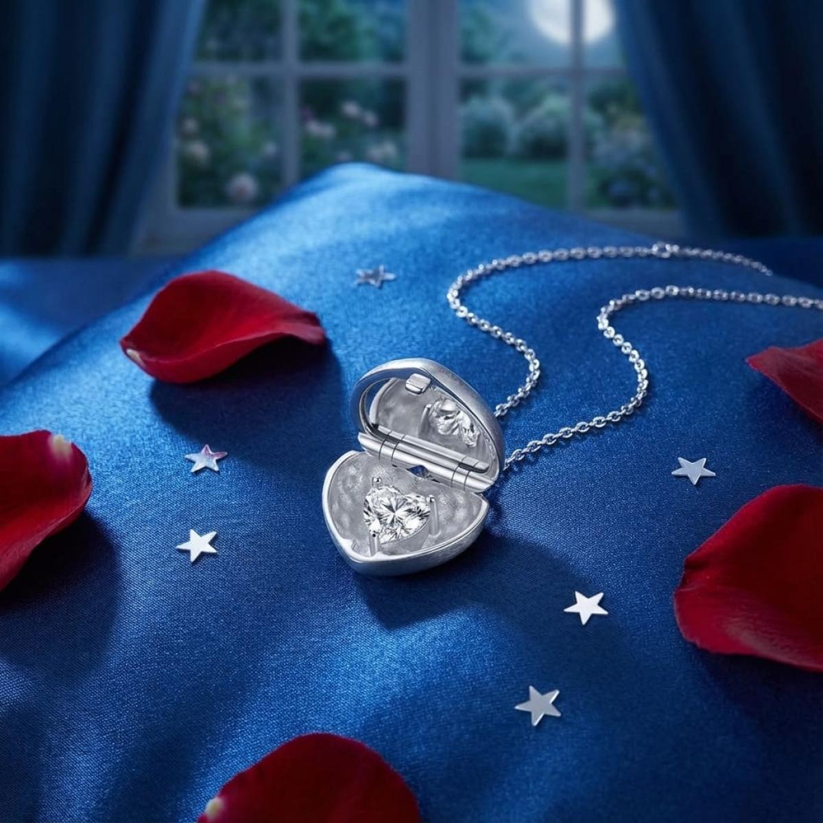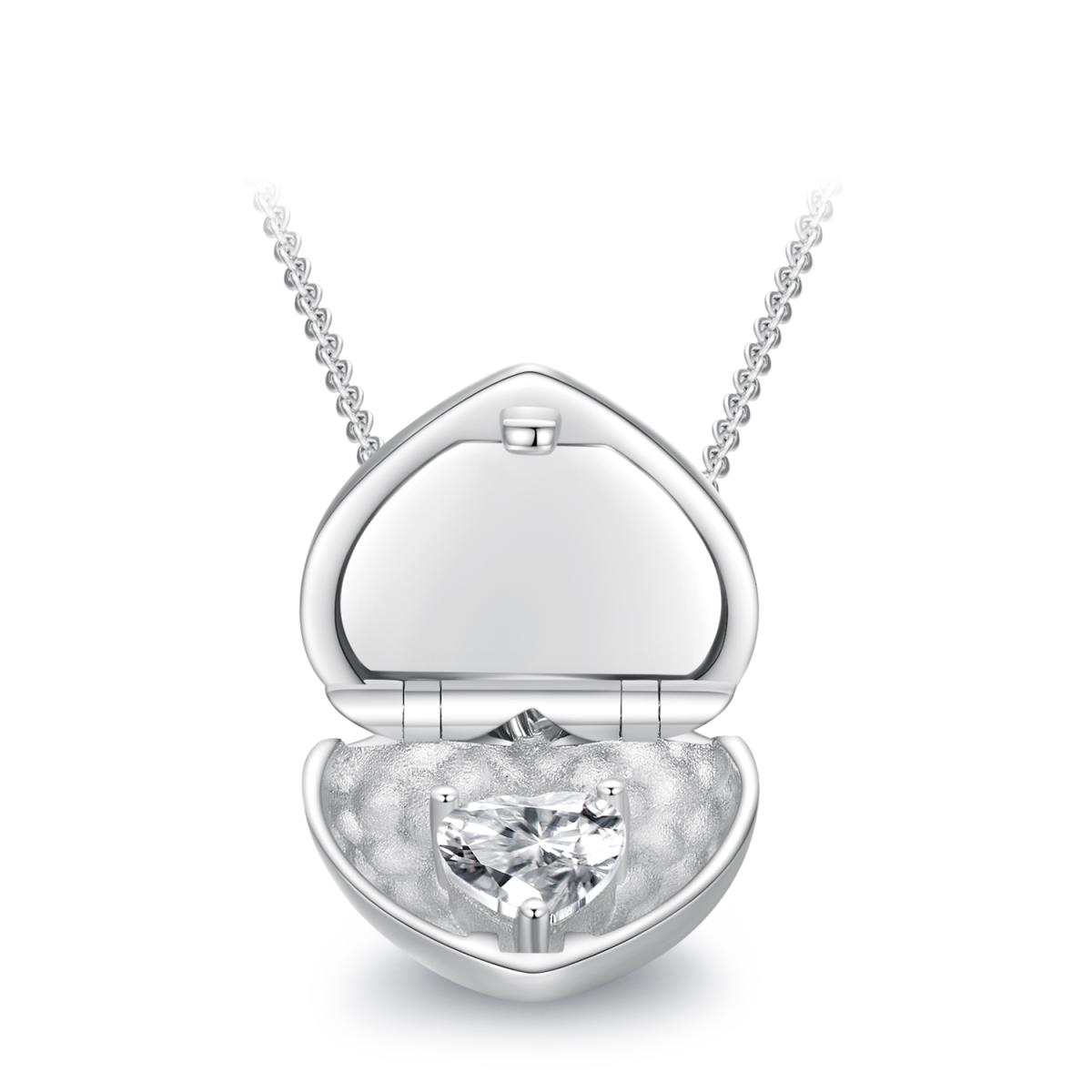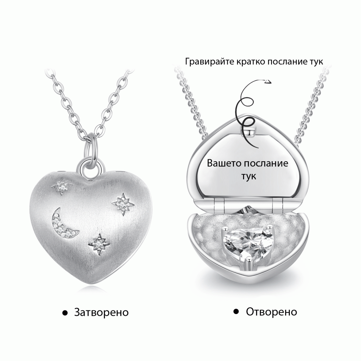 Голям бял циркон във формата на сърце е вграден в това уникално отварящо се колие. Ако искате инересен и креативен подарък, това колие е точно за вас. Имаме възможност да гравираме скрито послание във вътрешността му - така думите и пожеланията Ви ще останат неприкосновени <3