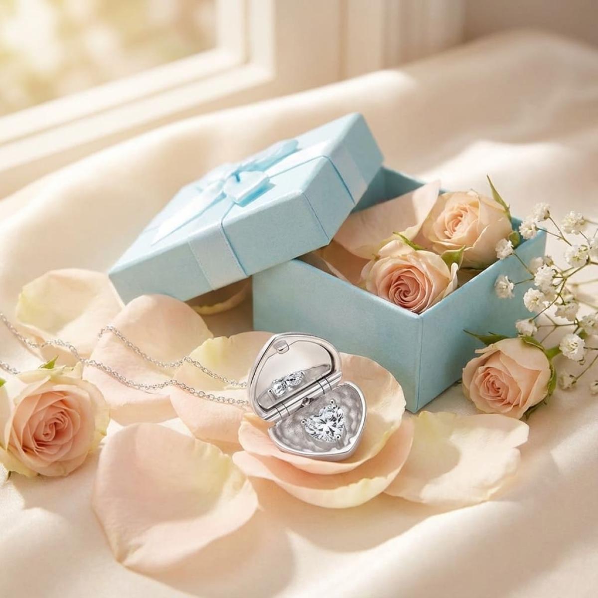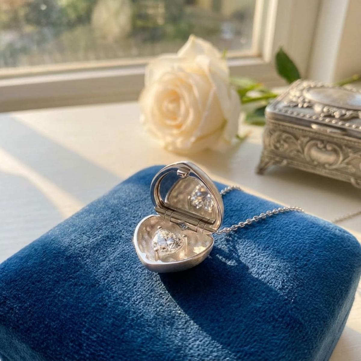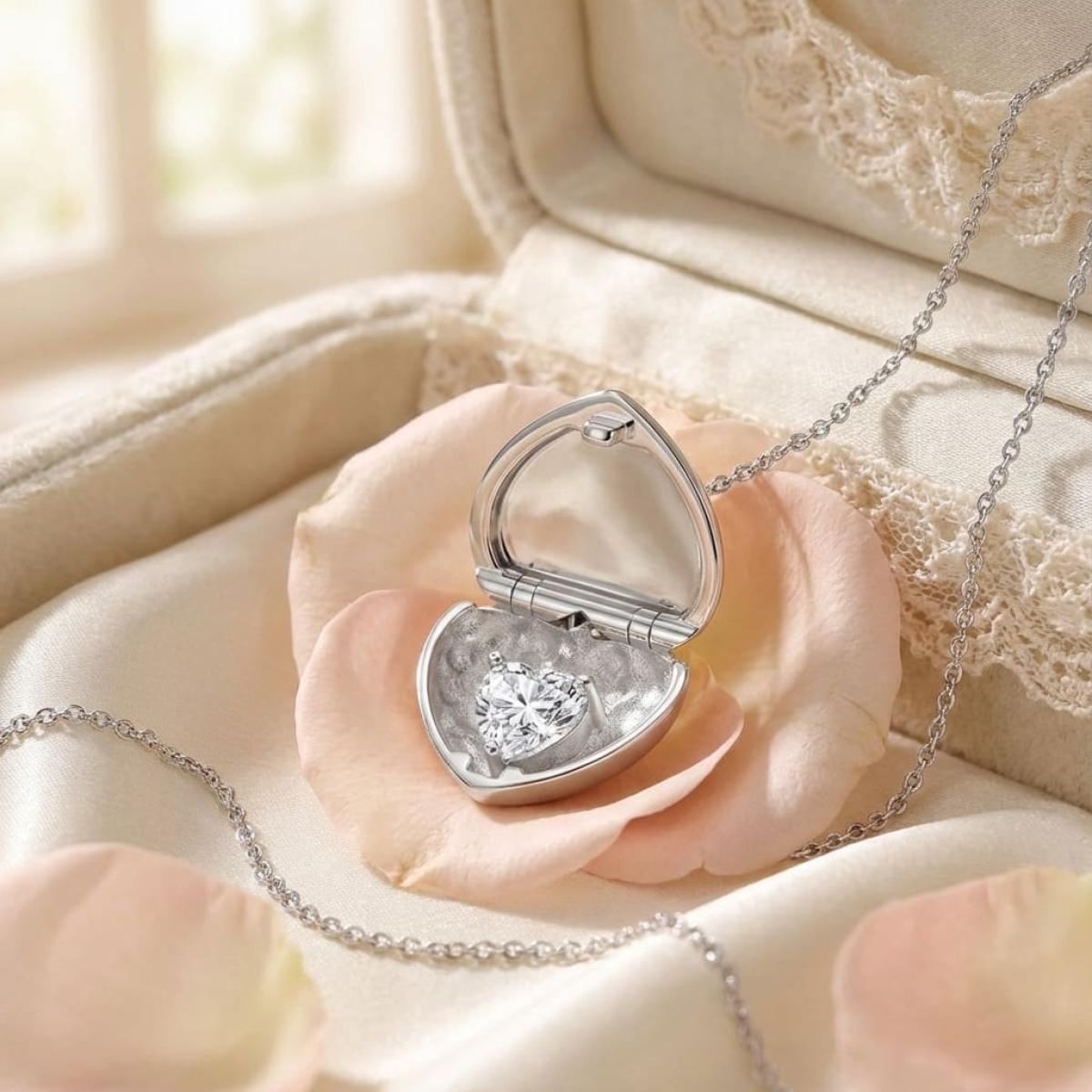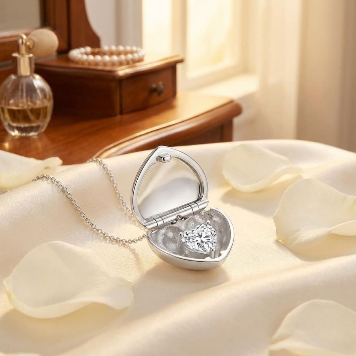 Голям бял циркон във формата на сърце е вграден в това уникално отварящо се колие. Ако искате инересен и креативен подарък, това колие е точно за вас. Имаме възможност да гравираме скрито послание във вътрешността му - така думите и пожеланията Ви ще останат неприкосновени <3