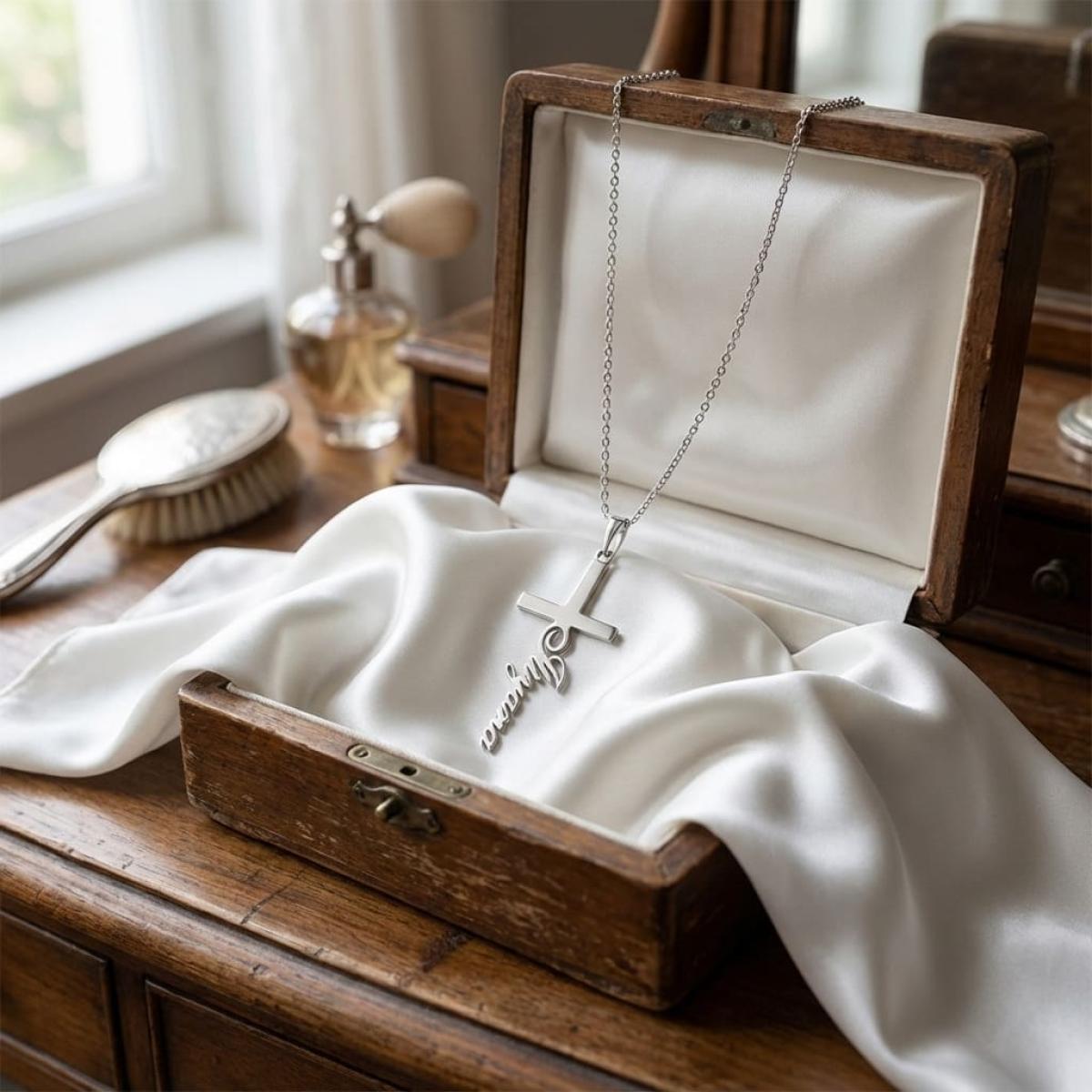 Сребърният медальон Кръст с име съчетава в себе си силата на религиозния символ и интимността на персоналния жест. Кръстът е сред най-разпознаваемите символи на вярата, носен през вековете като израз на принадлежност към Христовата църква. Именно затова той продължава да бъде един от най-предпочитаните подаръци при специални поводи, свързани с личното израстване, приемствеността и духовната връзка в семейството.