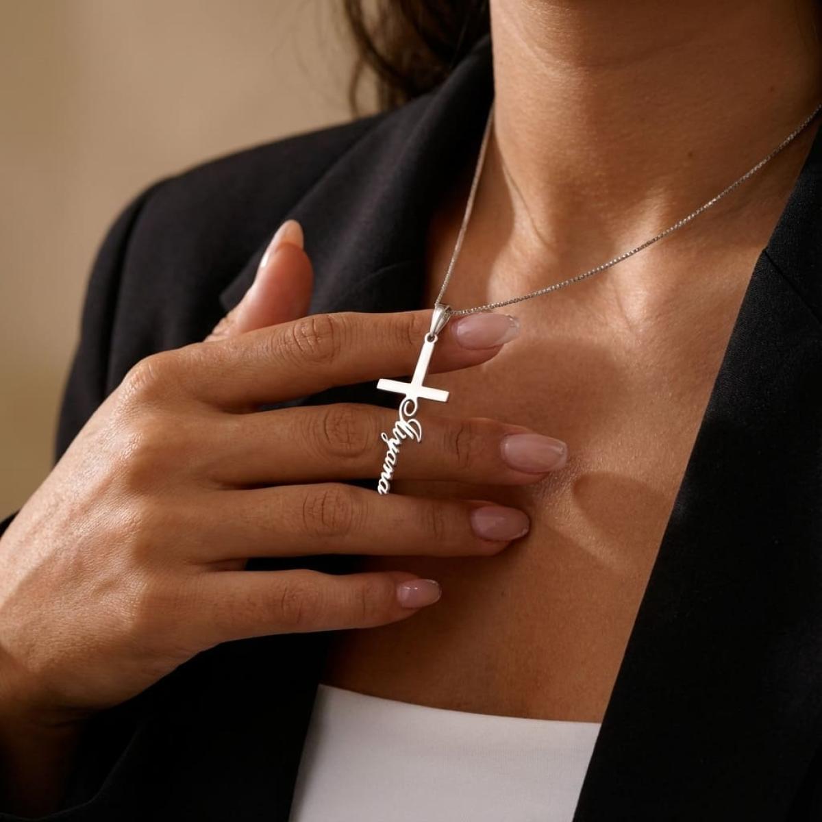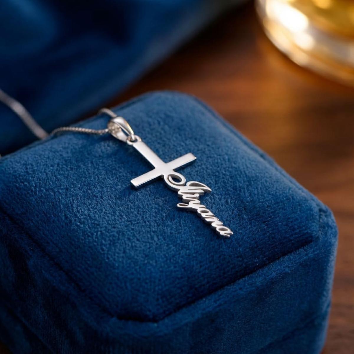 Изписаното име не нарушава чистотата на формата, а напротив – добавя нов елемент, който прави кръста по-жив, по-модерен и по-свързан със своя притежател. Самата персонализация се изпълнява внимателно, така че името да бъде стилно оформено, красиво и четливо, без да нарушава баланса на линиите.