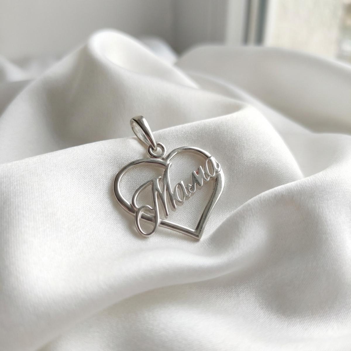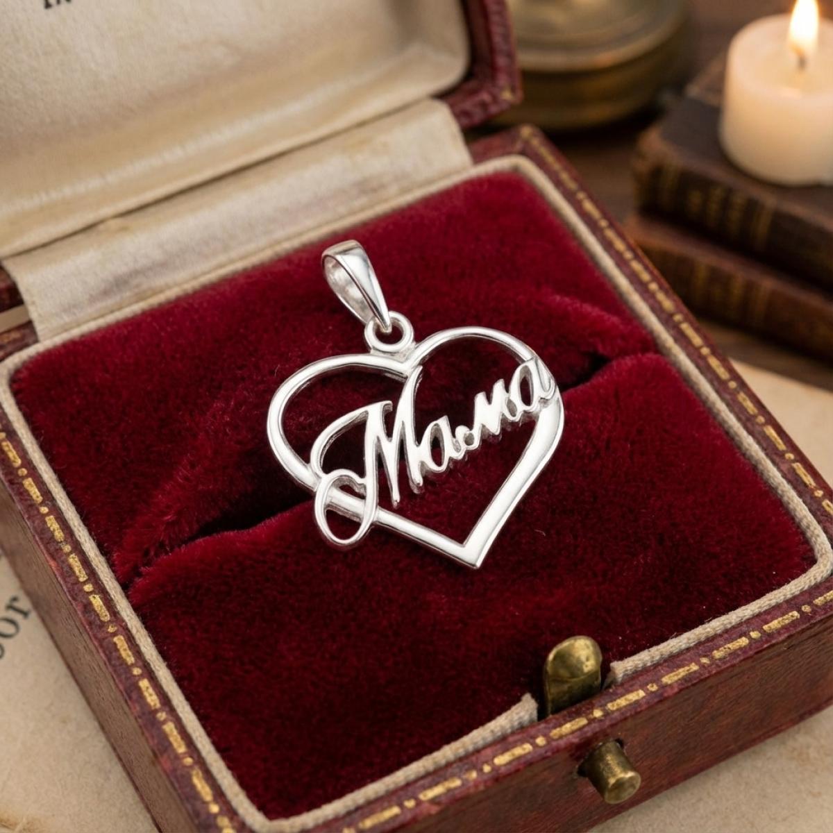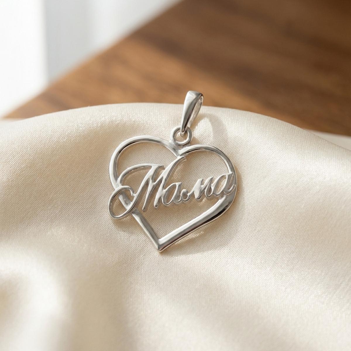 Сребърен медальон сърце Мама
