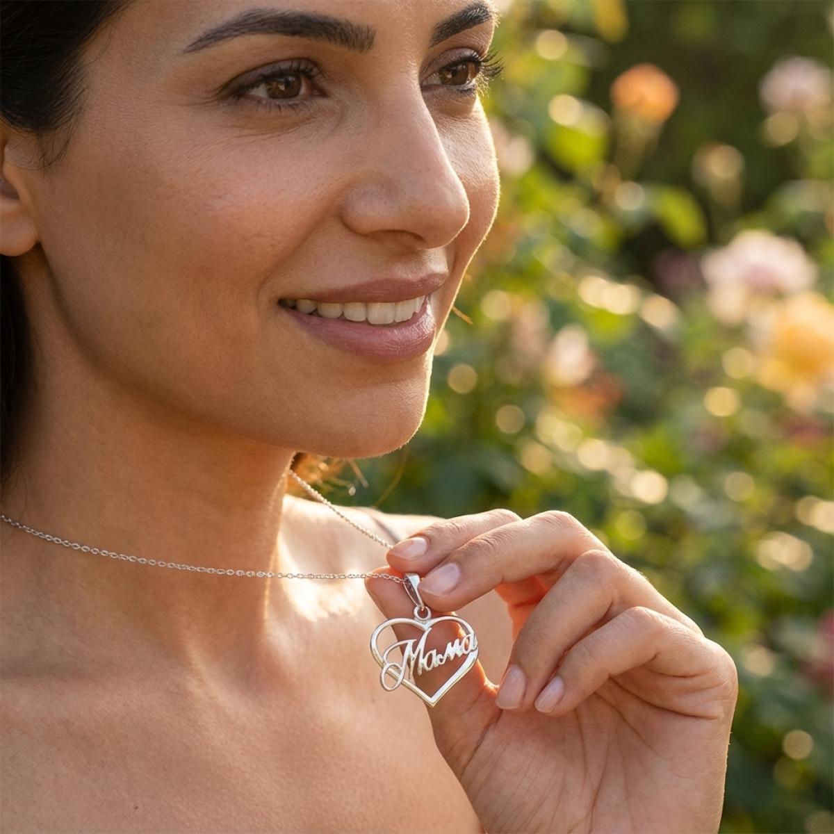 Сребърните бижута са чудесно ежедневно решение, особено когато дизайнът им е семпъл и изискан, какъвто е случаят с това деликатно и женствено колие с надпис мама. То може да се носи с ежедневни и официални дрехи, оставайки все така акцент в цялостната визия на жената. Докато златото се превърна в метал, носен все по-рядко извън официалната стилистика, то среброто е материалът, на който са базирани накитите, носени всеки ден.