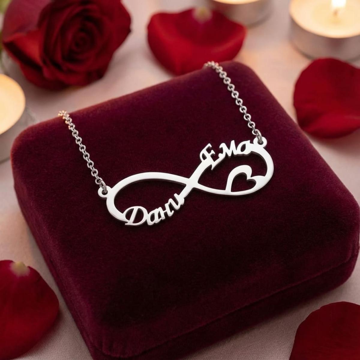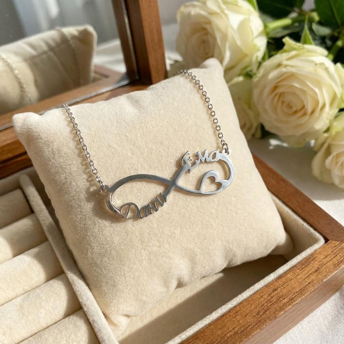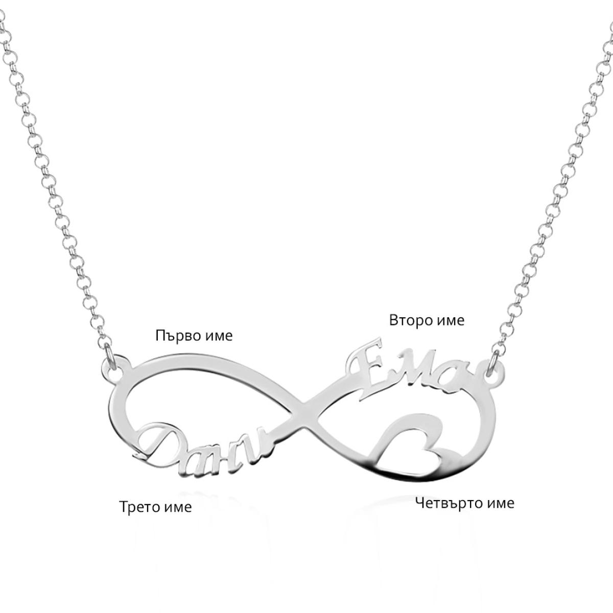 Сребърно колие с безкрайност и две имена по избор