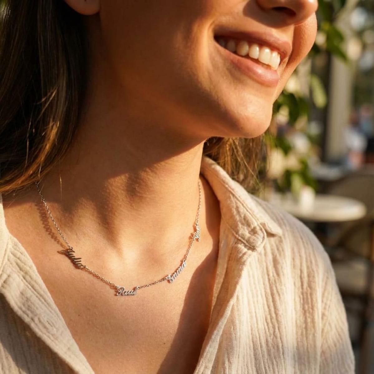 Искате да изненадате любимата дама, като ѝ поднесете персонализирано бижу? Приветстваме тази идея, защото тя съчетава две неща, които дамите изключително много обичат – бижутата и специалното внимание. Предлагаме ви красиво сребърно колие с няколко имена.