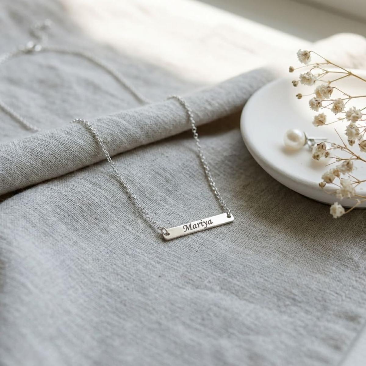 Сребърно колие с плочка и възможност за гравиране
