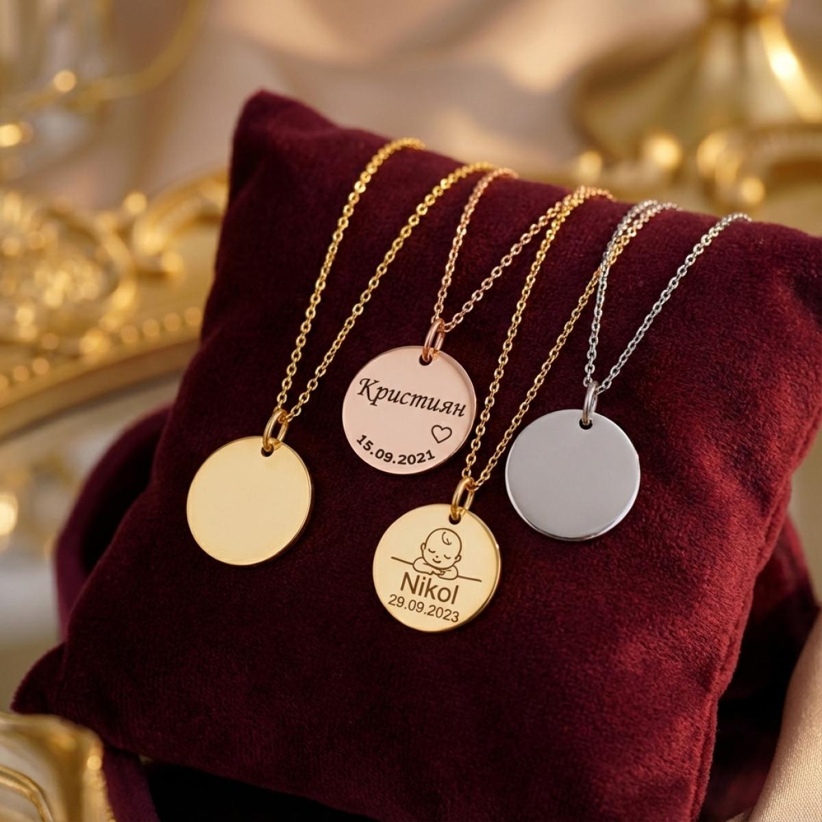 От момента, в който вземат в ръце своите рожби, та чак до сетния им дъх, за майките няма нищо по-важно от техните деца. Бижутерия Паладиум ви предлага един супер оригинален и много сантиментален подарък – колие с кръгла плочка за гравиране, на която ще изпишем рождените данни на вашето дете.