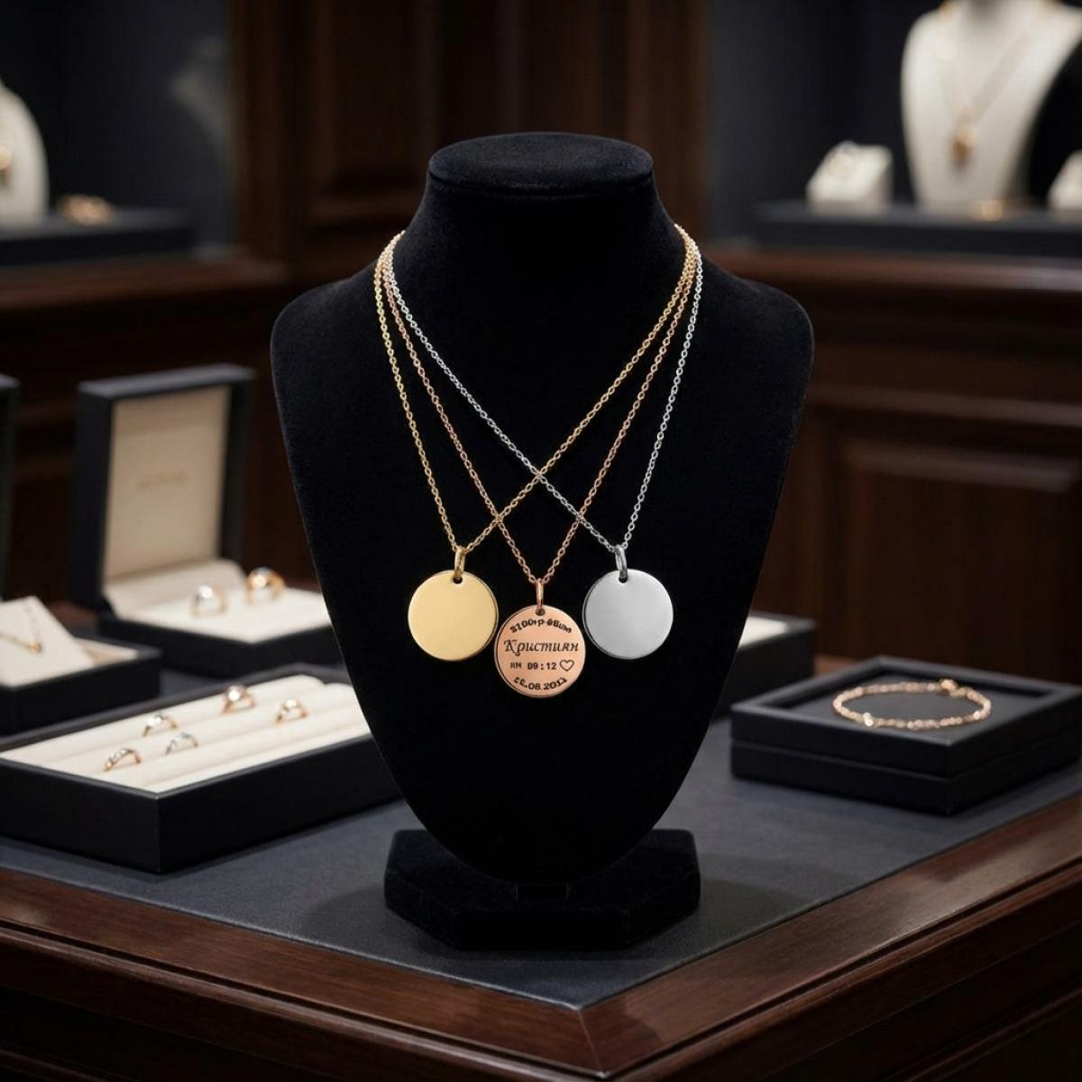 Колието с гравирана плочка се изработва от висококачествено класическо сребро проба 925. Можете да го поръчате в три много ефектни варианта: