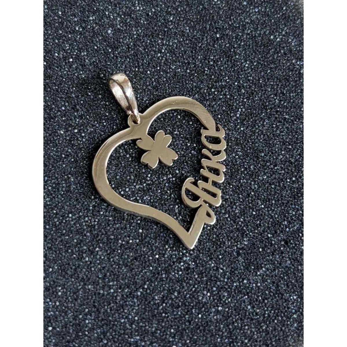 Златен медальон във формата на сърце с име по избор и детелинка