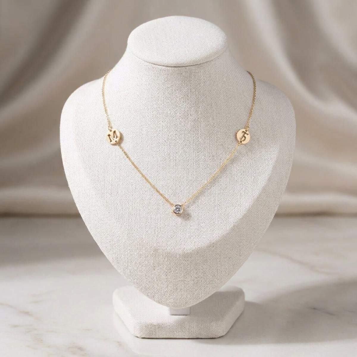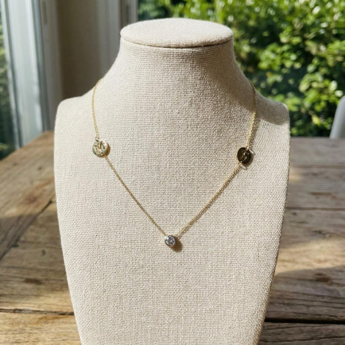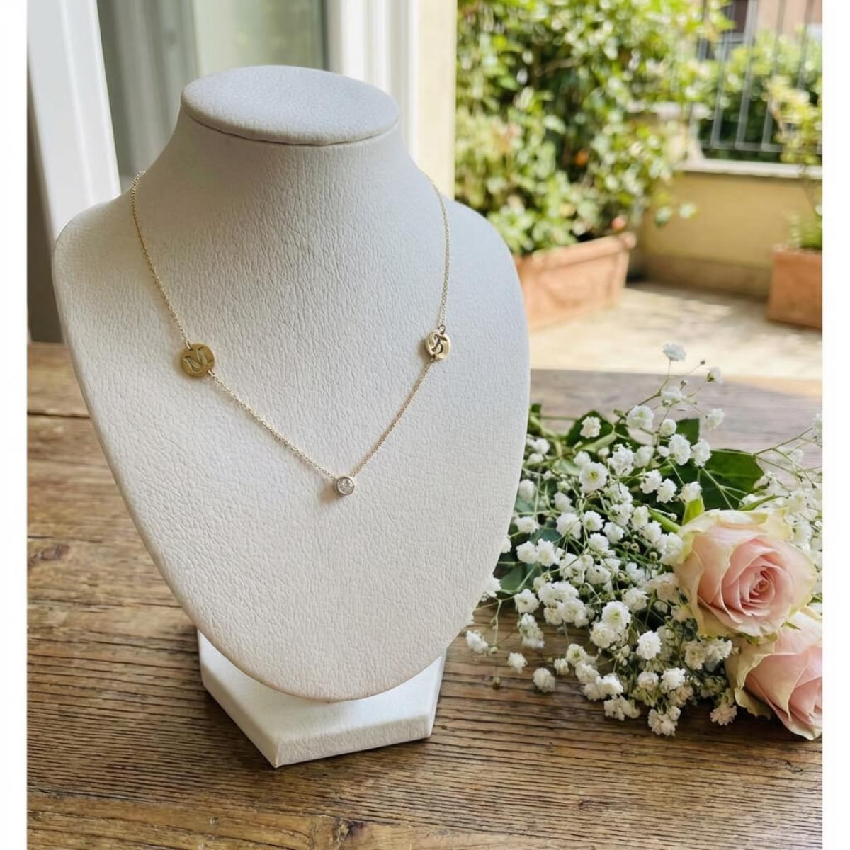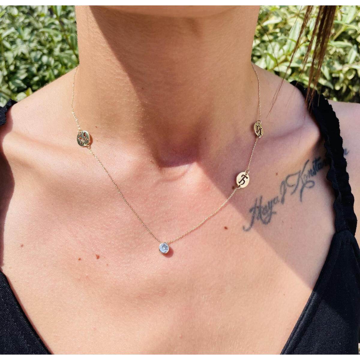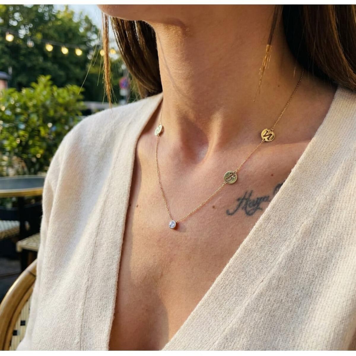 Златно колие с циркон и кръгчета с букви по избор