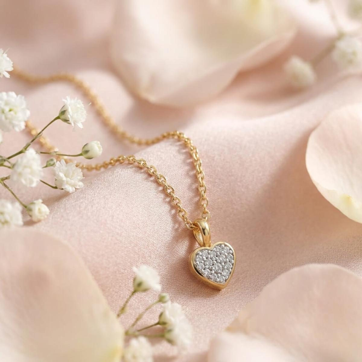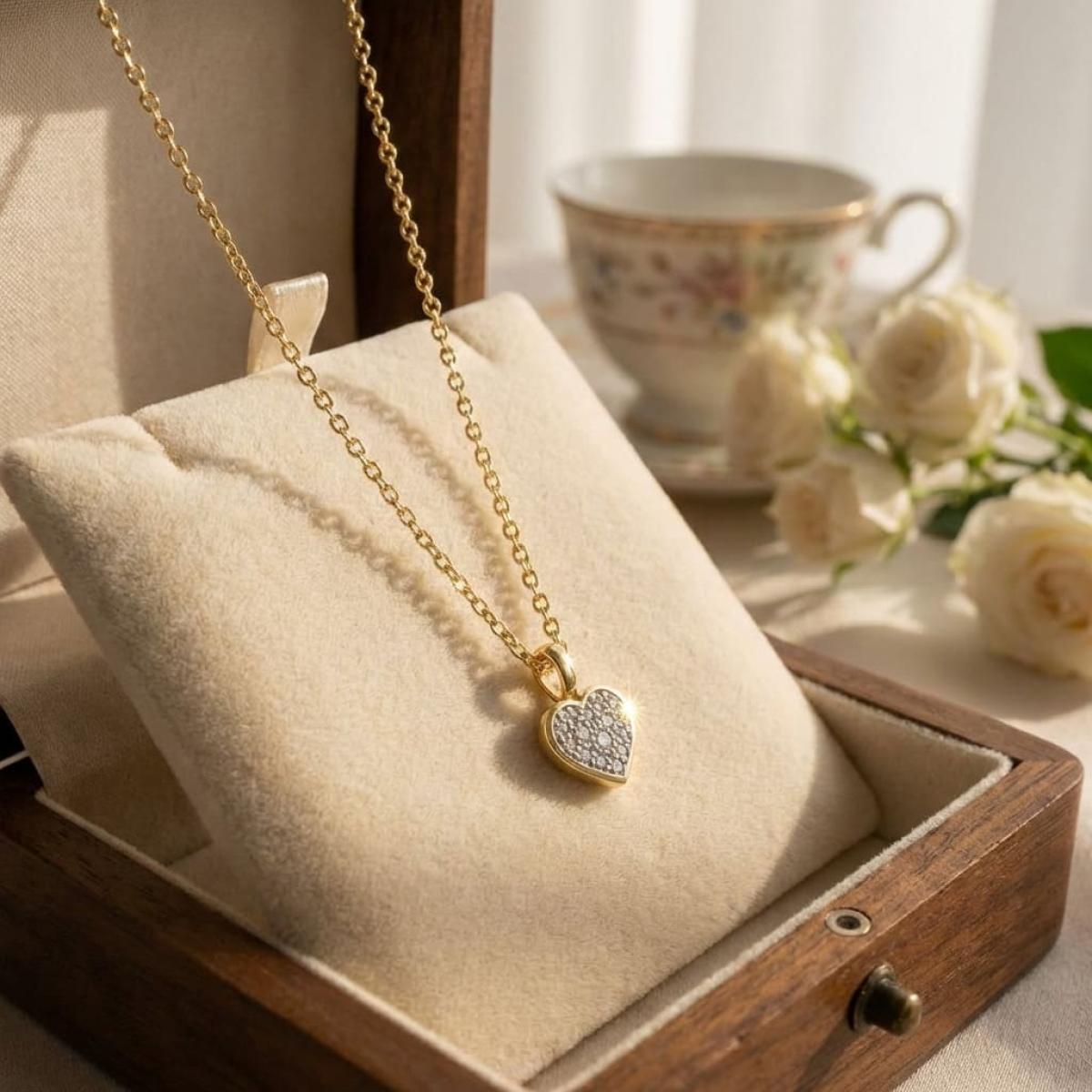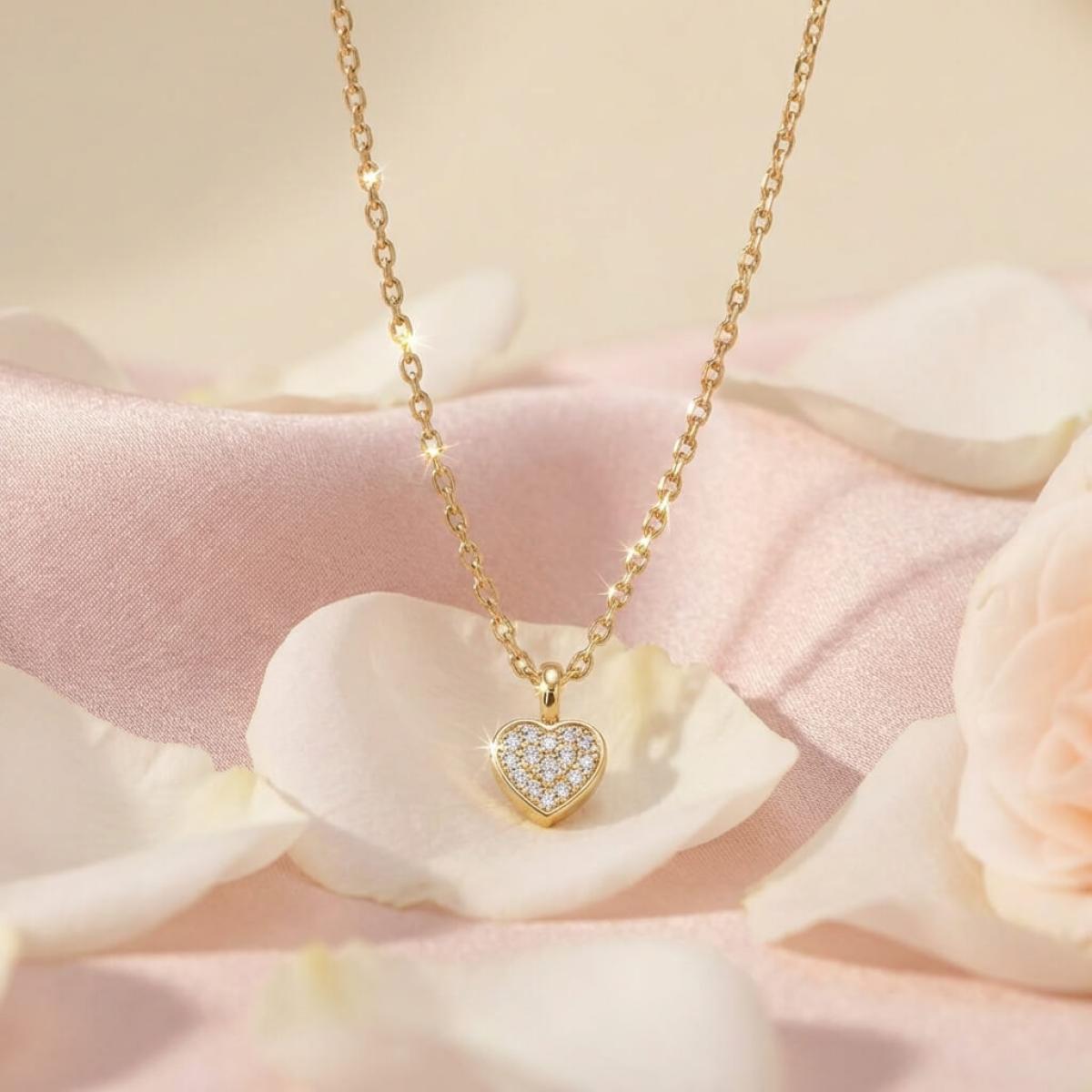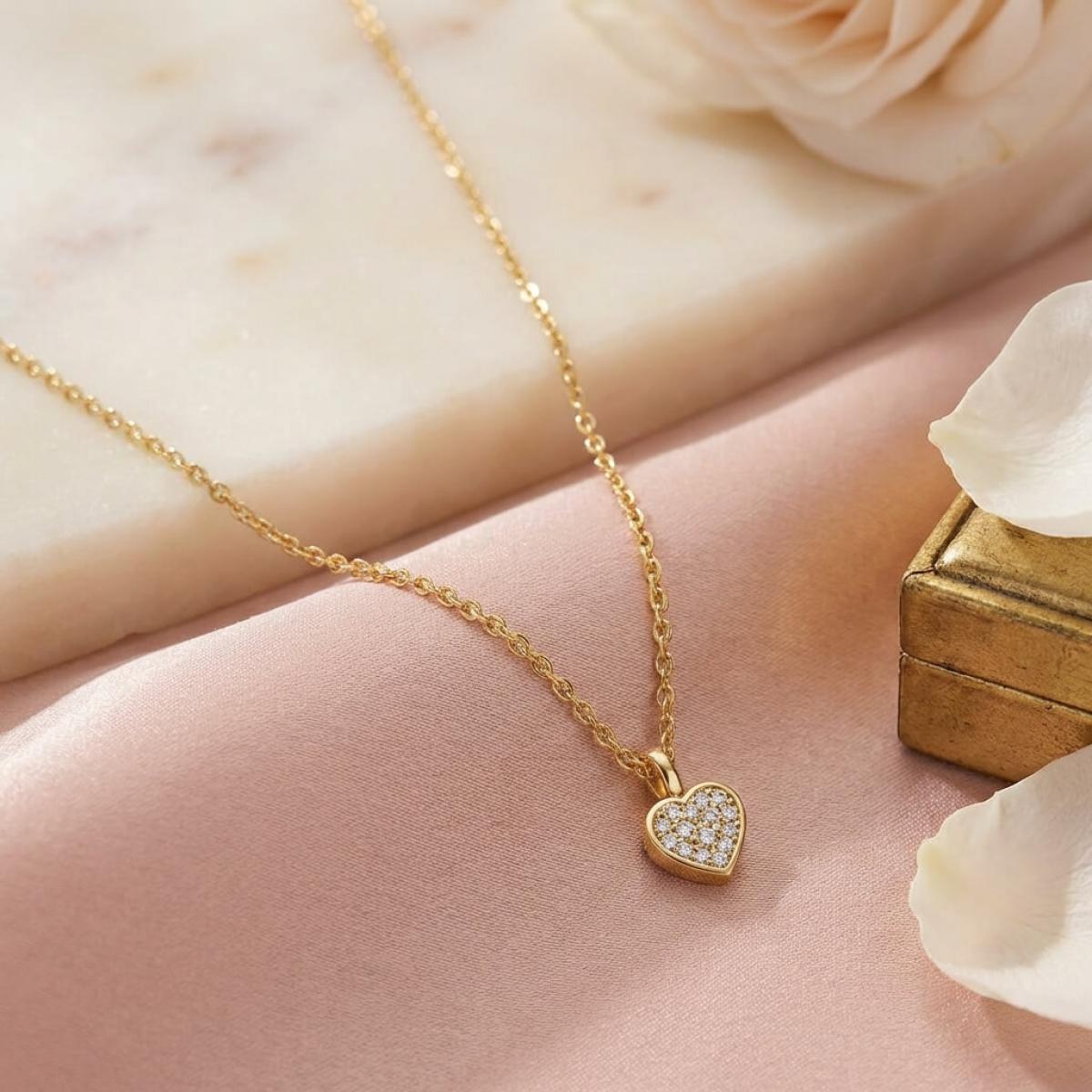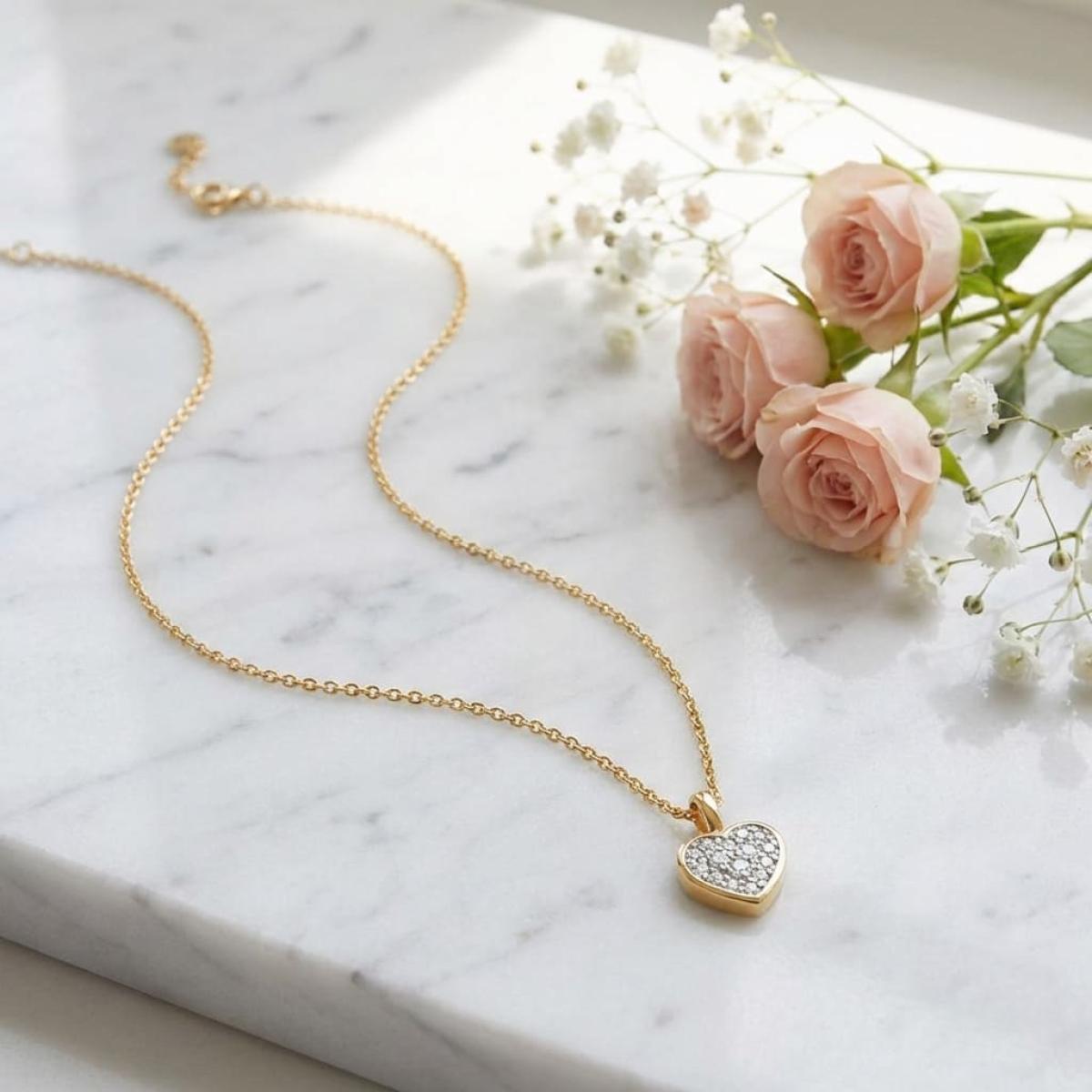 Златно колие сърце с диамант-0,03 ct – класика с вечна стойност