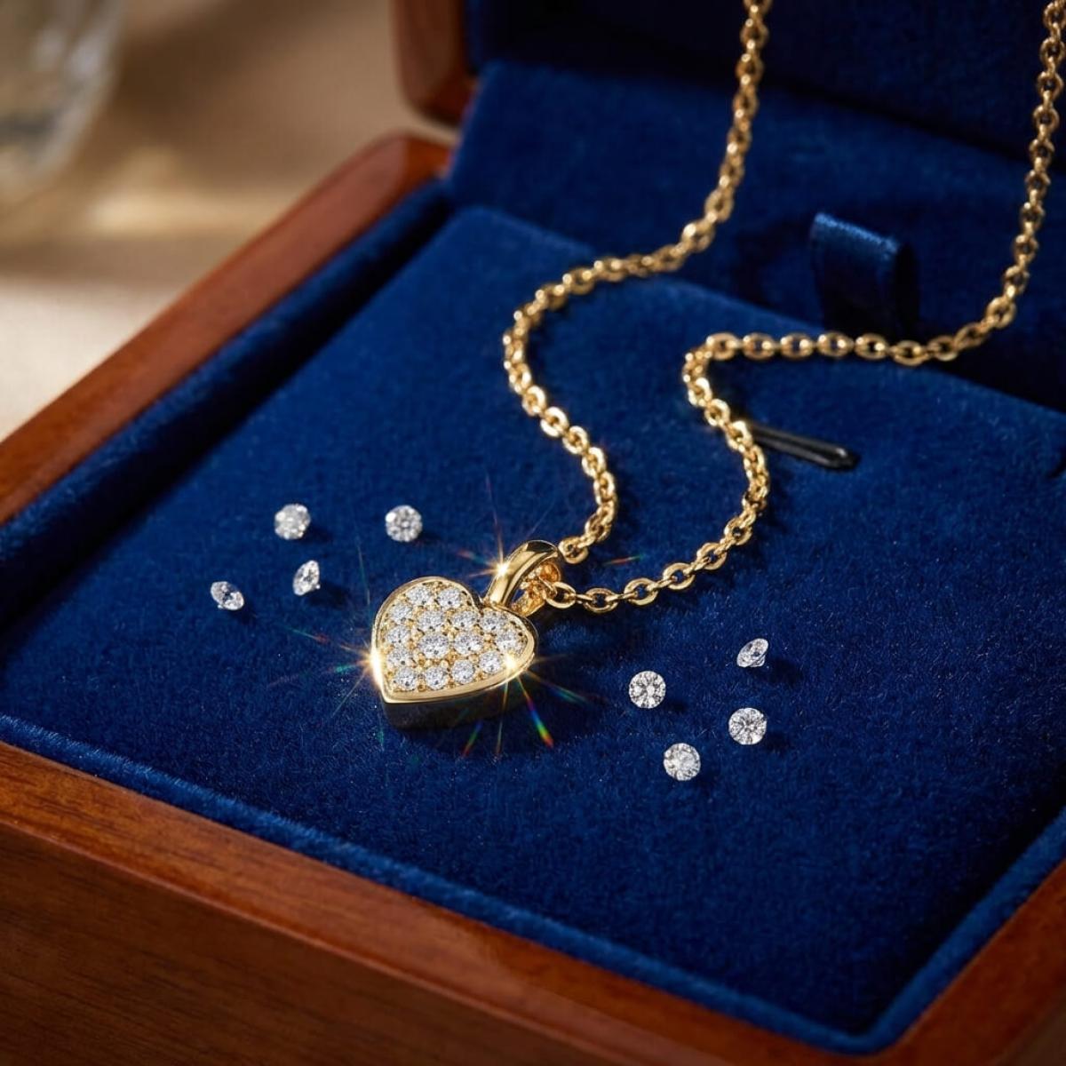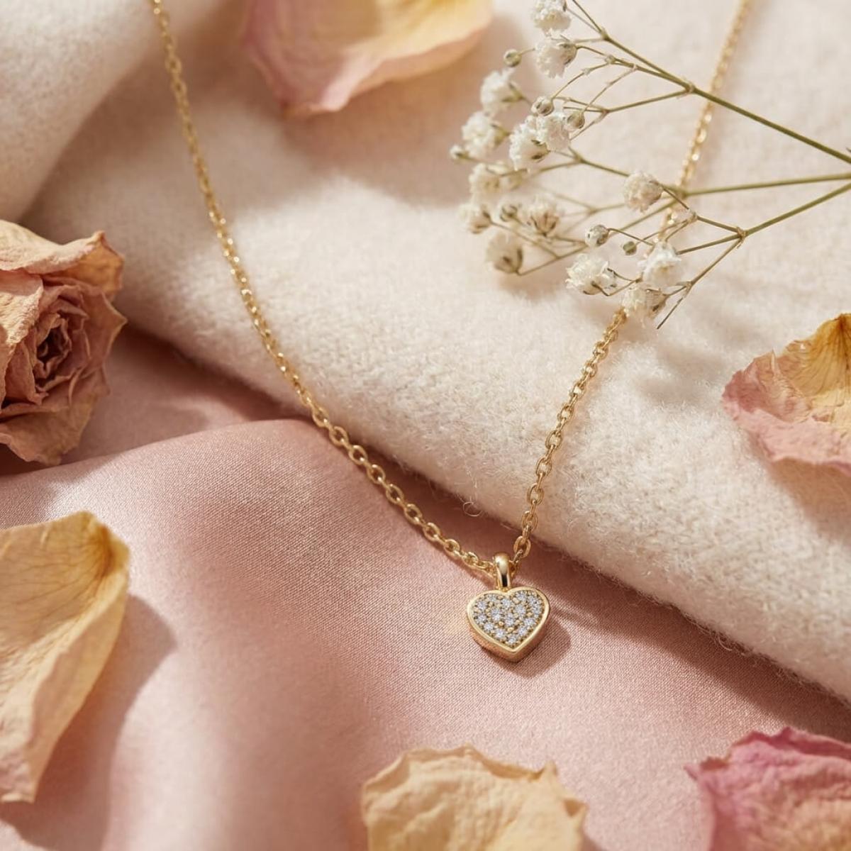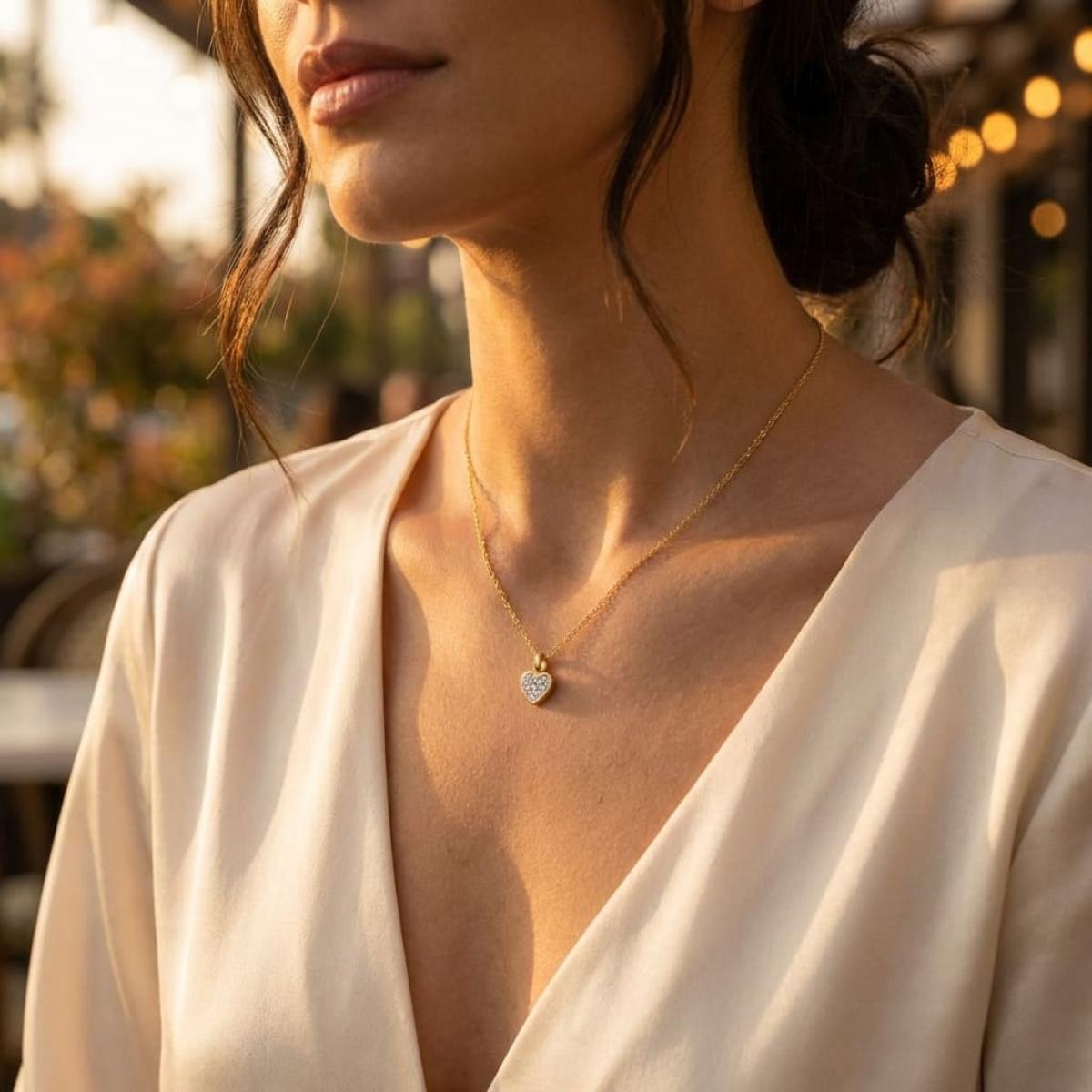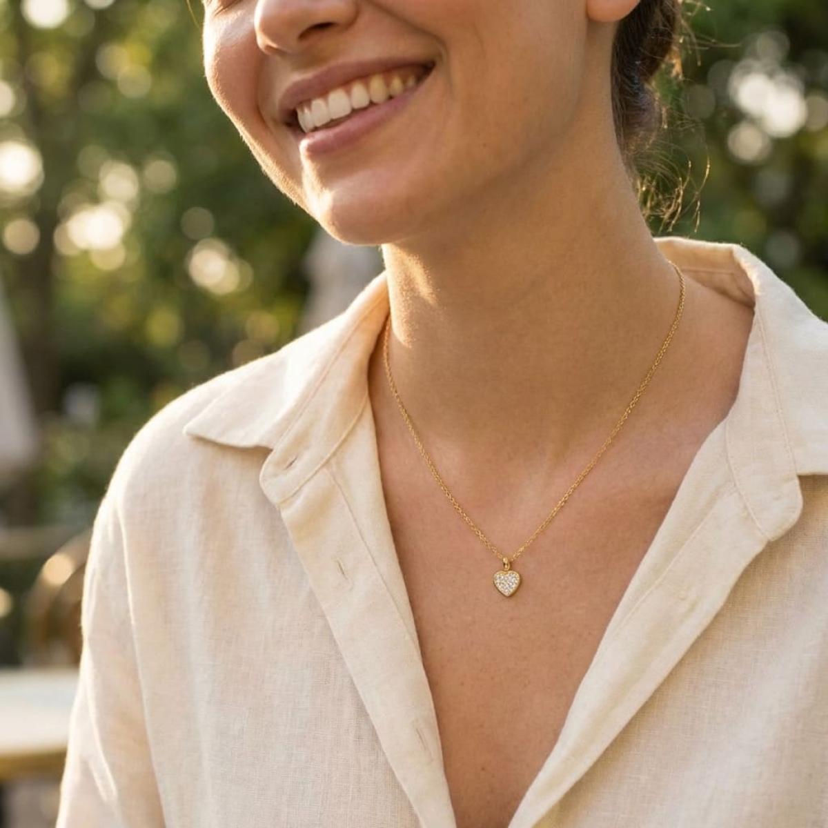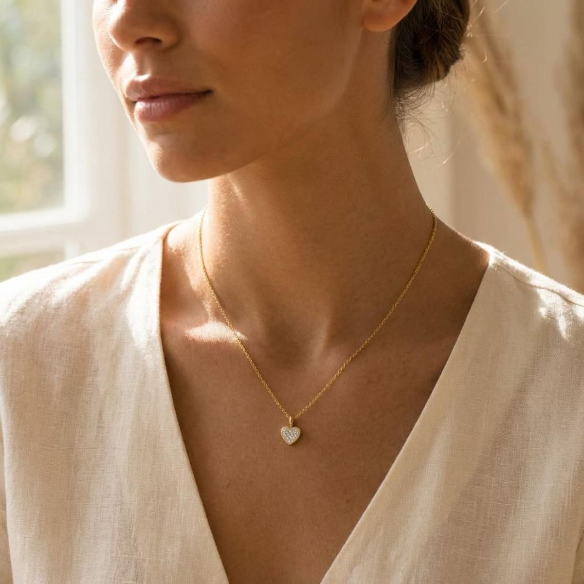Златно колие сърце с диамант-0,03 ct – класика с вечна стойност